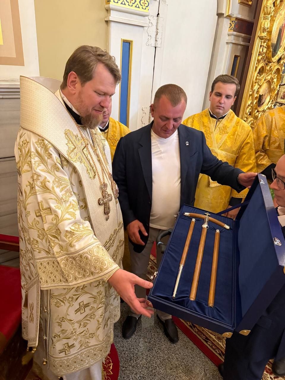 28 июля, в Спасо-Преображенском соборе Донецка, за Божественной литургией, В.А. Левин поздравил митрополита Донецкого и Мариупольского Владимира с именинами, после чего состоялось общение по вопросам взаимодействия предприятия и епархии.