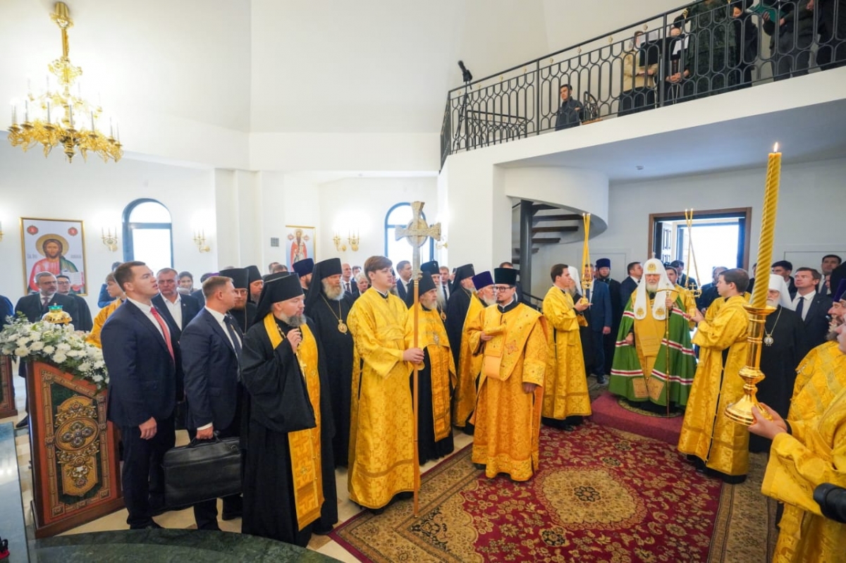 18 сентября 2025 года Святейший Патриарх Московский и всея Руси Кирилл совершил чин малого освящения храма преподобного Сергия Радонежского в столице Республики Казахстан г. Астане.