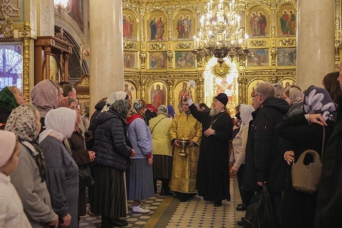 Его Высокопреосвященству сослужили: проректор Алма-Атинской духовной семинарии, кандидат богословия, доктор медицинских наук, профессор игумен Агафангел (Гагуа); ключарь храма святых мучениц Веры, Надежды, Любови и матери их Софии иеромонах Антоний (Дробязко), председатель комиссии Казахстанского митрополичьего округа по благотворительности и социальному служению протоиерей Вячеслав Пугачев, благочинный Лисаковского церковного округа, настоятель храма во имя святого праведного Иоанна Кронштадтского города Лисаковск протоиерей Олег Калмыков, клирик Софийского собора Иверско-Серафимовского женского монастыря города Алма-Аты диакон Богдан Бойко, клирики подворья.
