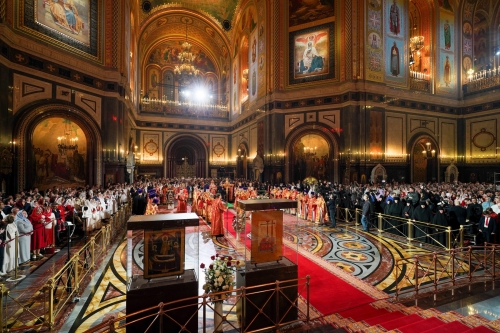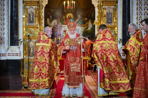 Его Святейшеству сослужили: митрополит Воскресенский Григорий, управляющий делами Московской Патриархии, первый викарий Патриарха Московского и всея Руси по г. Москве; митрополит Волоколамский Антоний, председатель Отдела внешних церковных связей Московского Патриархата; архиепископ Зеленоградский Савва, председатель Синодального миссионерского отдела, заместитель управляющего делами Московской Патриархии; епископ Раменский Алексий, личный секретарь Святейшего Патриарха Кирилла; протоиерей Михаил Рязанцев, ключарь Храма Христа Спасителя; духовенство г. Москвы.