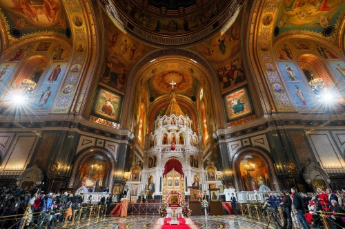 Пасхальное богослужение в Храме Христа Спасителя посетили Президент Российской Федерации В.В. Путин и мэр г. Москвы С.С. Собянин.