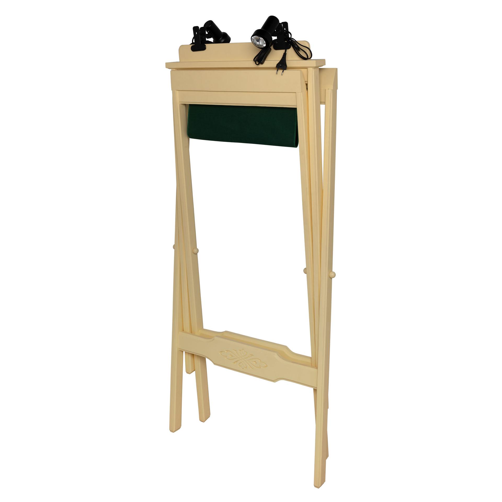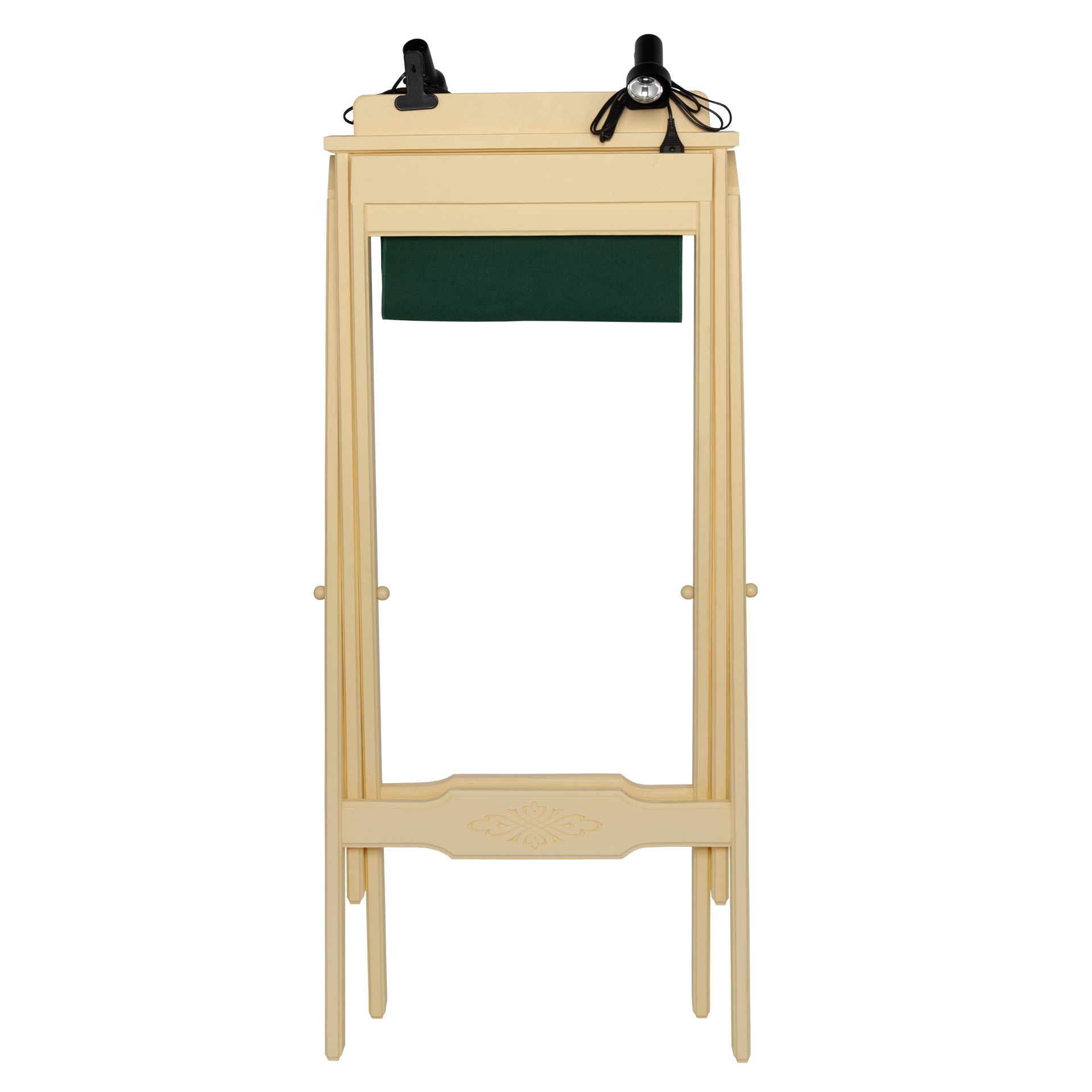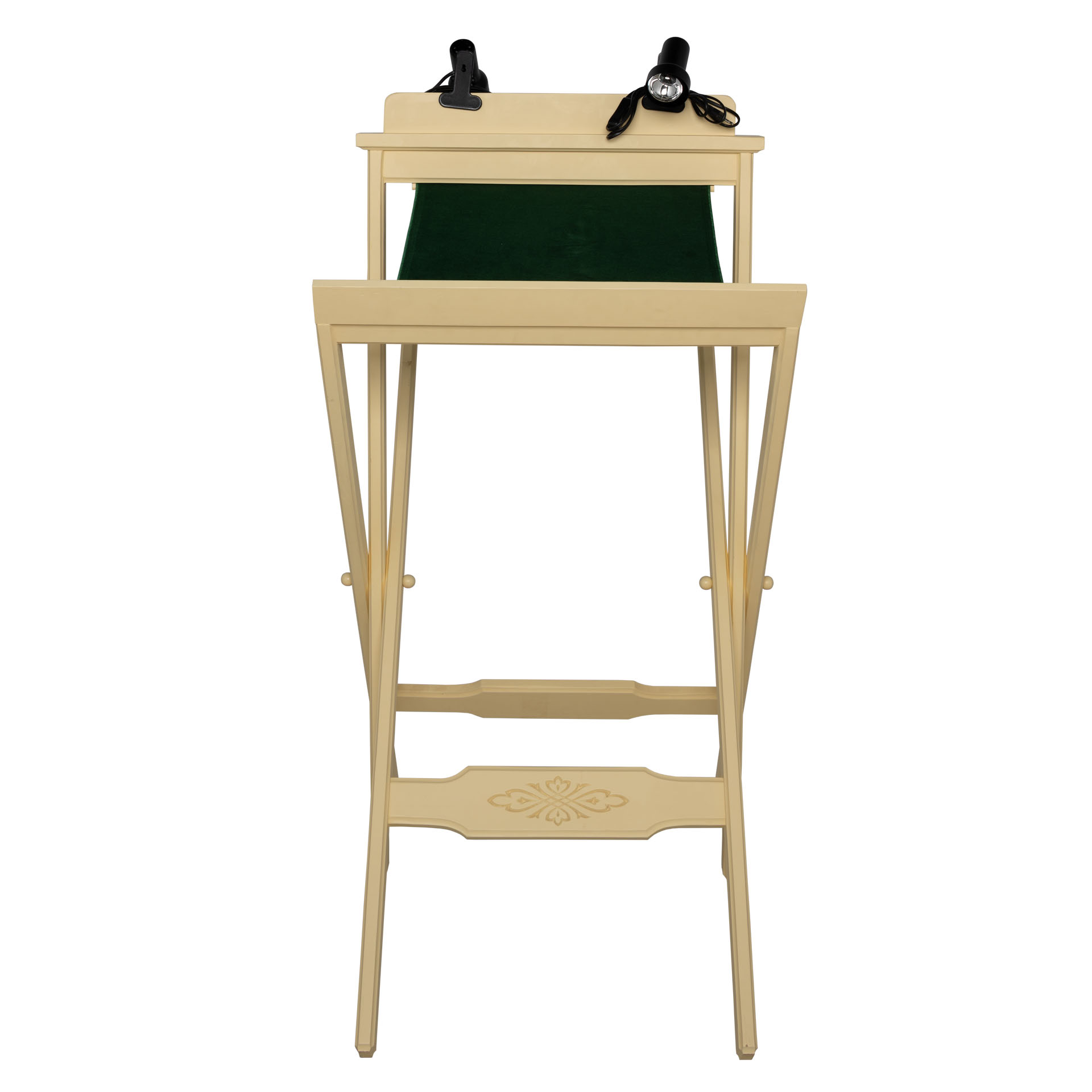 Выполненный из липы и покрытый лаком, складной аналой с двумя тканевыми пюпитрами прекрасно подойдет для богослужебного использования чтецами и клиросом. У аналоя есть деревянный выступ, на который будут удобно крепиться лампы на прищепках, что существенно облегчит чтение и пение в темный зимний период. Высокий деревянный бортик убережет книги от падения или скольжения.
