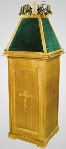 Данная модель аналоя сделает пение на клиросе комфортным. 4 рабочие поверхности облегчат смену книг и нот. Благодаря маленькому наклону пюпитров, даже задние ряды певчих смогут увидеть ноты, а на высоком деревянном бортике самые толстые богослужебные книги будут стоять устойчиво. Шершавое бархатное покрытие пюпитров предотвратит скольжение и падение нот. Также к аналою прилагаются 4 светильника для каждого пюпитра, что существенно облегчит пение в темное зимнее время.