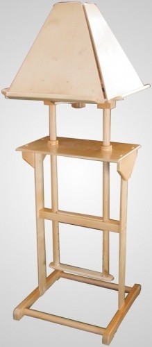 Данная минималистическая модель аналоя сделает пение на клиросе комфортным. Регент сможет регулировать высоту пюпитра в зависимости от роста и количества певчих. Поворотный механизм и 4 рабочие поверхности облегчат смену книг и нот. Благодаря маленькому наклону пюпитров, даже задние ряды певчих смогут увидеть ноты, а на высоком деревянном бортике самые толстые богослужебные книги будут стоять устойчиво.