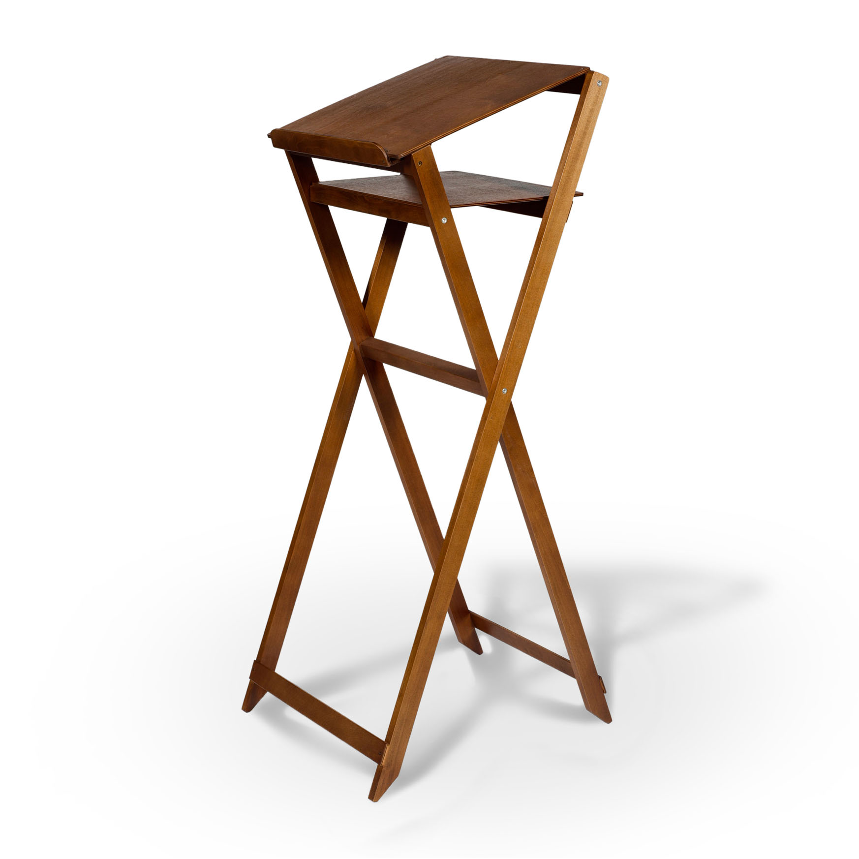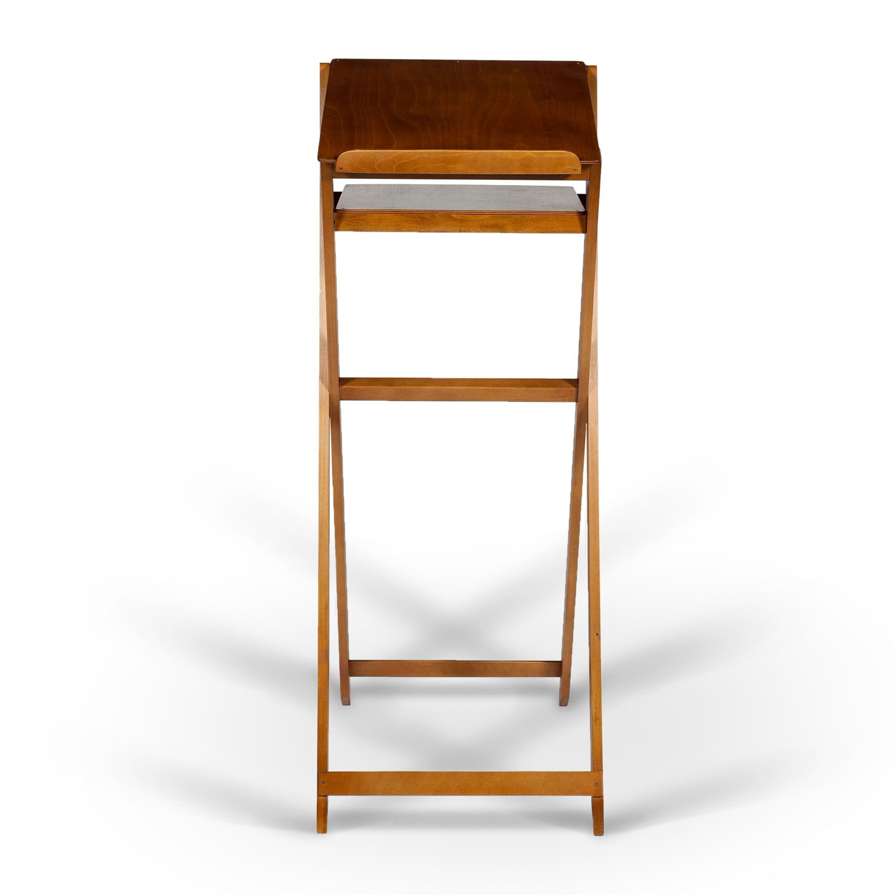 Минималистичный складной аналой с деревянным верхом прекрасно подойдет для богослужебного использования чтецами. Благодаря легкому весу (4 кг), данную модель будет удобно переносить в центр храма для чтения Апостола, Шестопсалмия или Евангелия. На верхней части аналоя есть высокий бортик, который убережет книги от падения. Для ситуаций, когда чтецу необходимы сразу несколько богослужебных книг, под верхней частью предусмотрена удобная полка. Размер полки длина: 320 мм, ширина: 400 мм