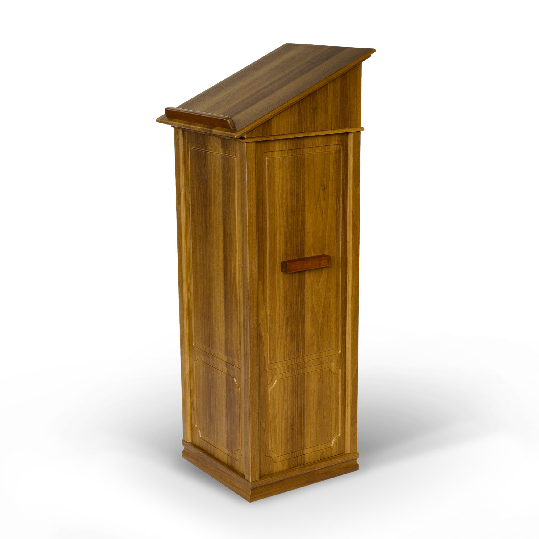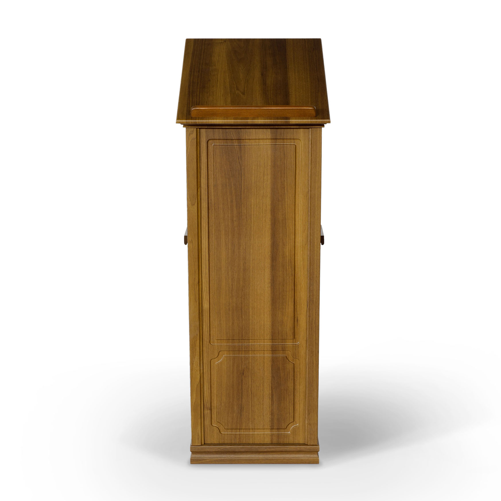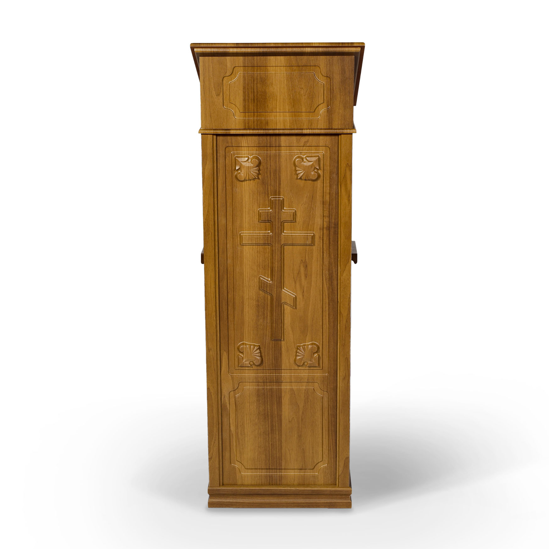 Простой и устойчивый, тумбовый аналой идеально подойдет для размещения в храме с лежащей сверху иконой. Высокий деревянный бортик убережет икону от падения. Украшенный цветным облачением, данный аналой впишется в любой интерьер храма благодаря нейтральному цвету облицовки. Ширина с ручками - 460 мм.