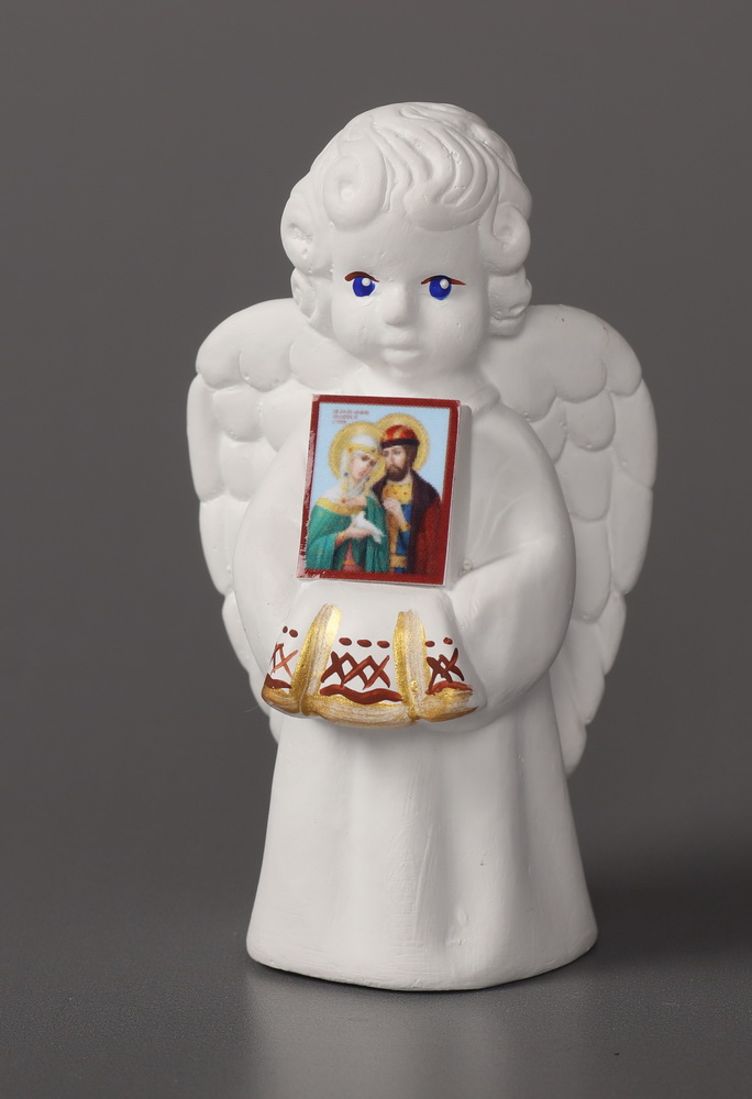 Ангел Хранитель скульптура гипсовая с иконой Петр и Феврония