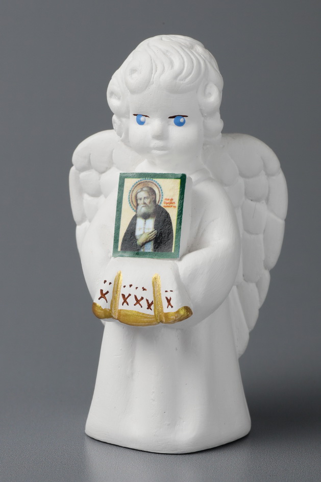 Ангел Хранитель скульптура гипсовая с иконой Серафим Саровский