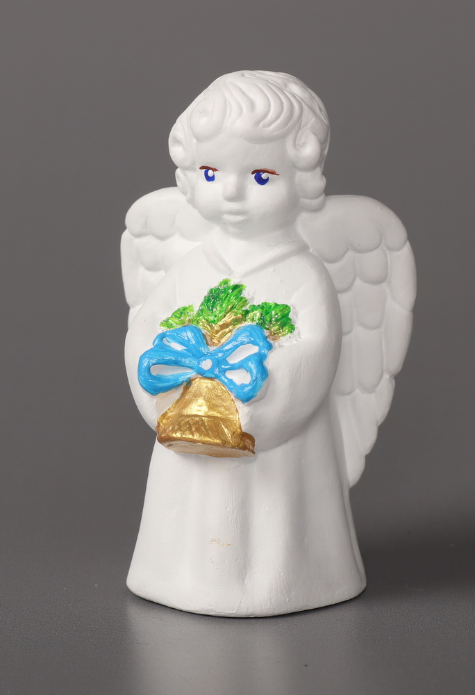 Ангел Хранитель скульптура гипсовая с Рождественским колокольчиком