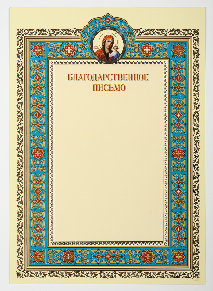 Благодарственное письмо церковное А4 тиснение Казанская 2