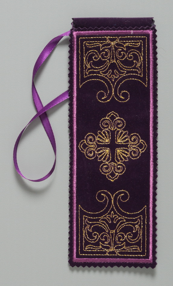 Декоративные элементы: автоматическая вышивка метализированными и шелковыми нитями, атласная лента.