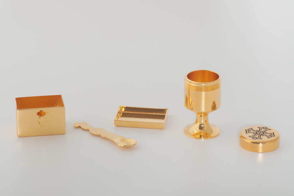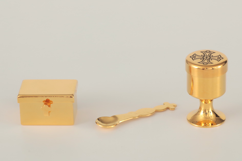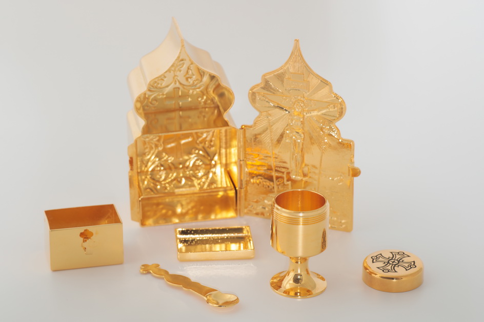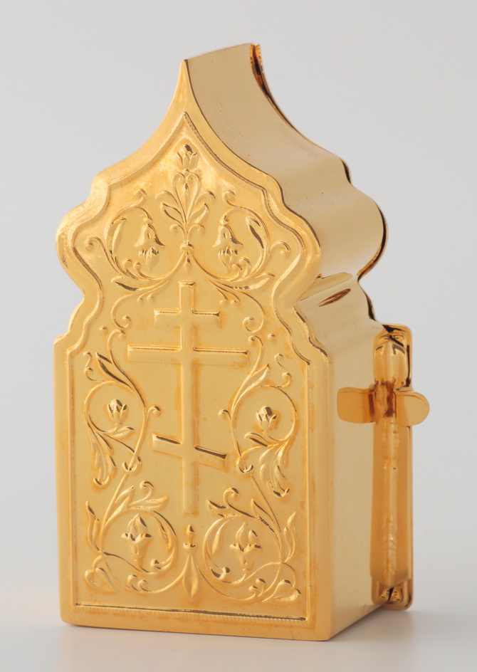 В ситуациях, когда человек по состоянию здоровья не может прийти в храм, священник причащает больного на дому. Для переноса Святых Даров используется дароносица. Внутри данной модели есть всё, необходимое для Причащения: ящичек для Тела Христова, лжица и маленькая чаша, закрывающаяся крышкой.