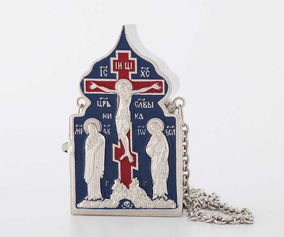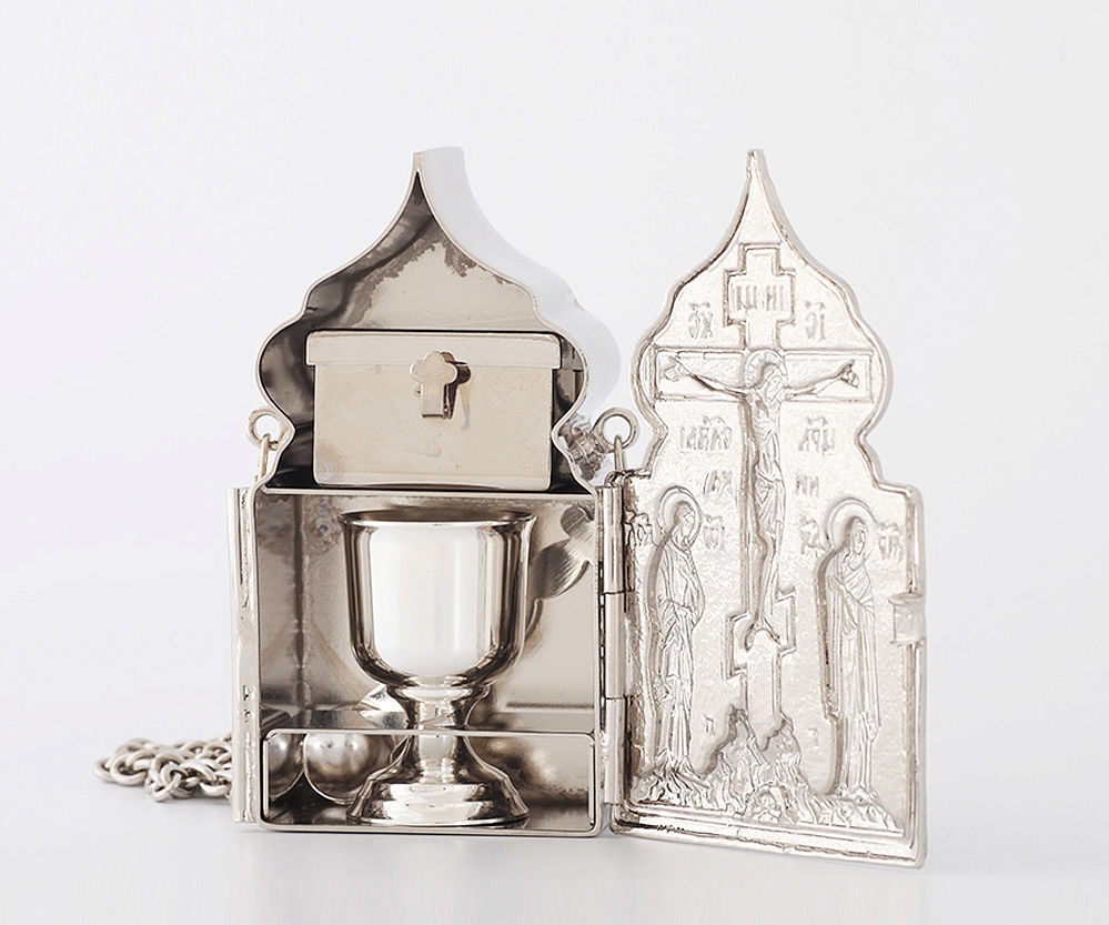 В дароносице хранится главная святыня христиан – Тело и Кровь Христова, – поэтому священнослужители с особым благоговением носят её на груди. Специально для этого у данной модели дароносицы есть металлическая цепочка. Внутри дароносицы есть всё, необходимое для Причащения: ящичек для Тела Христова, лжица и маленькая чаша. Но, благодаря легкому весу, дароносица будет удобна при транспортировке.