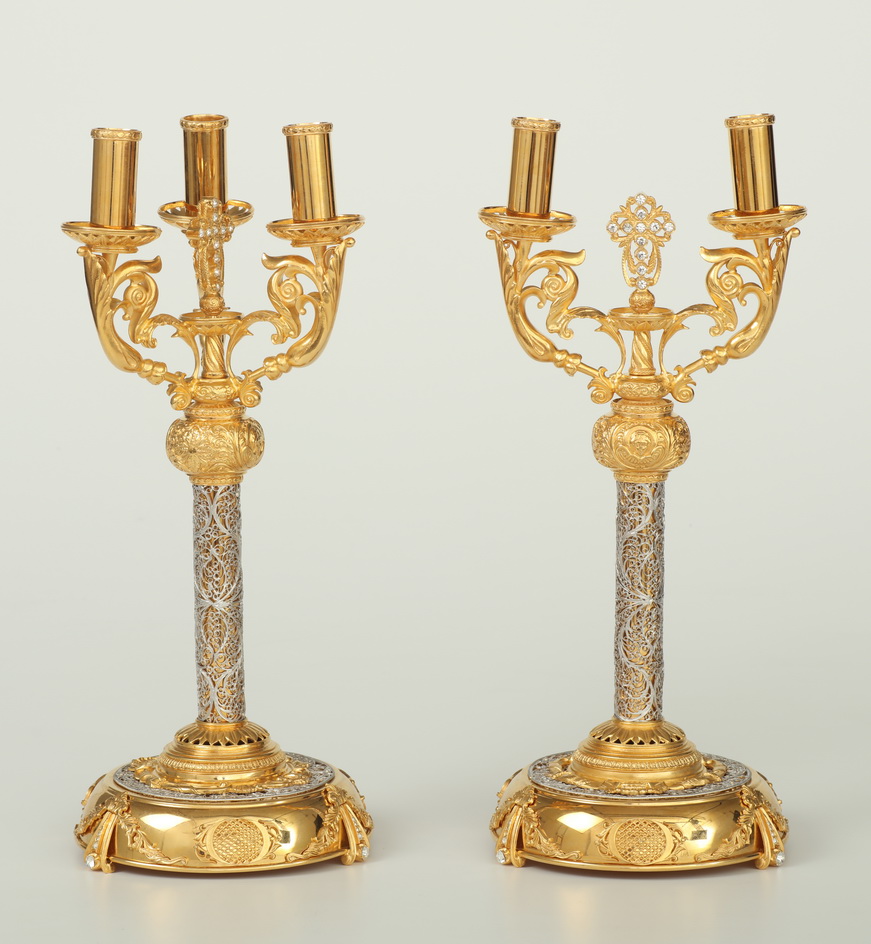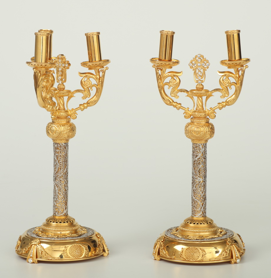 Дики́рий и трики́рий – подсвечники для двух и трех свечей соответственно. Используются на архиерейском богослужении для благословения молящихся. В остальное время дикирий и трикирий стоят в алтаре на Горнем месте.