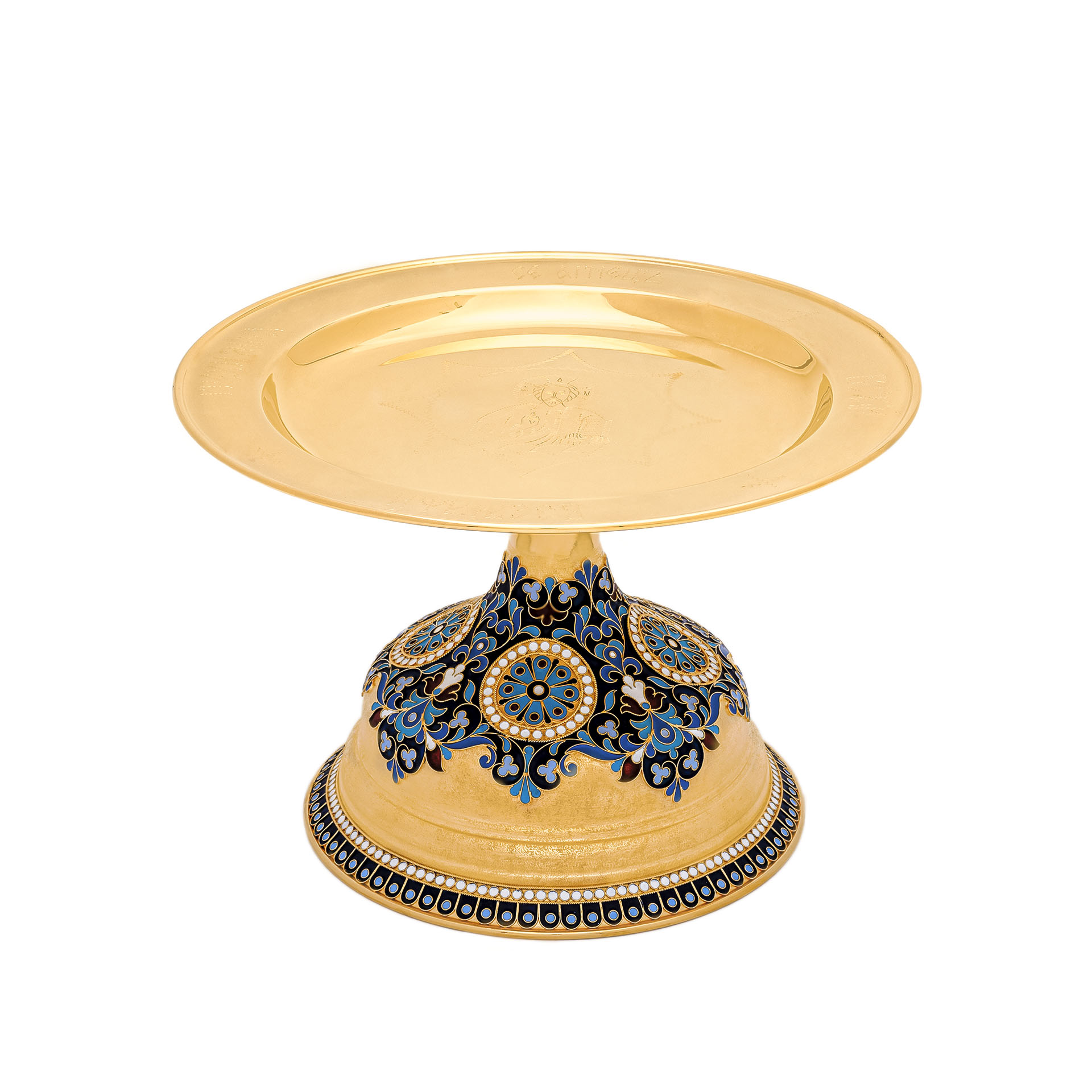 Дискос с поддискосником / ф240мм-песочные часы 1,0л потира / филигрань, эмаль, ручная гравировка / золочение
