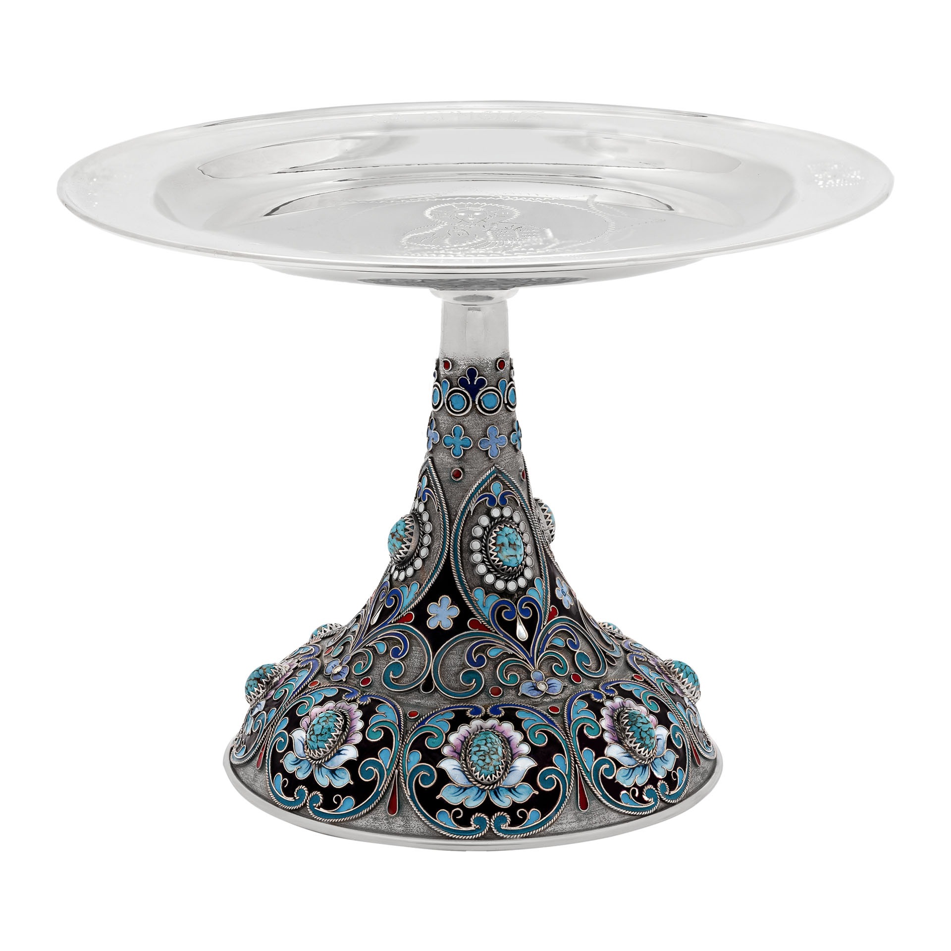 Дискос с поддискосником / ф240мм-потир 0,5л колос №1 / филигрань, эмаль, роспись, ручная гравировка / серебрение с чернением