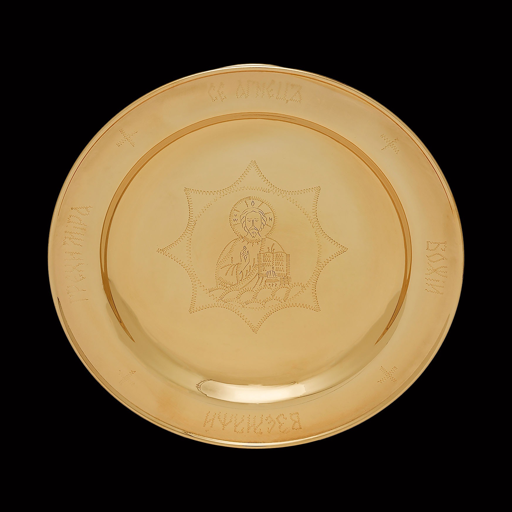 Дискос с поддискосником / ф240мм-потир 0,85л "№19" / филигрань, эмаль, ручная гравировка / золочение