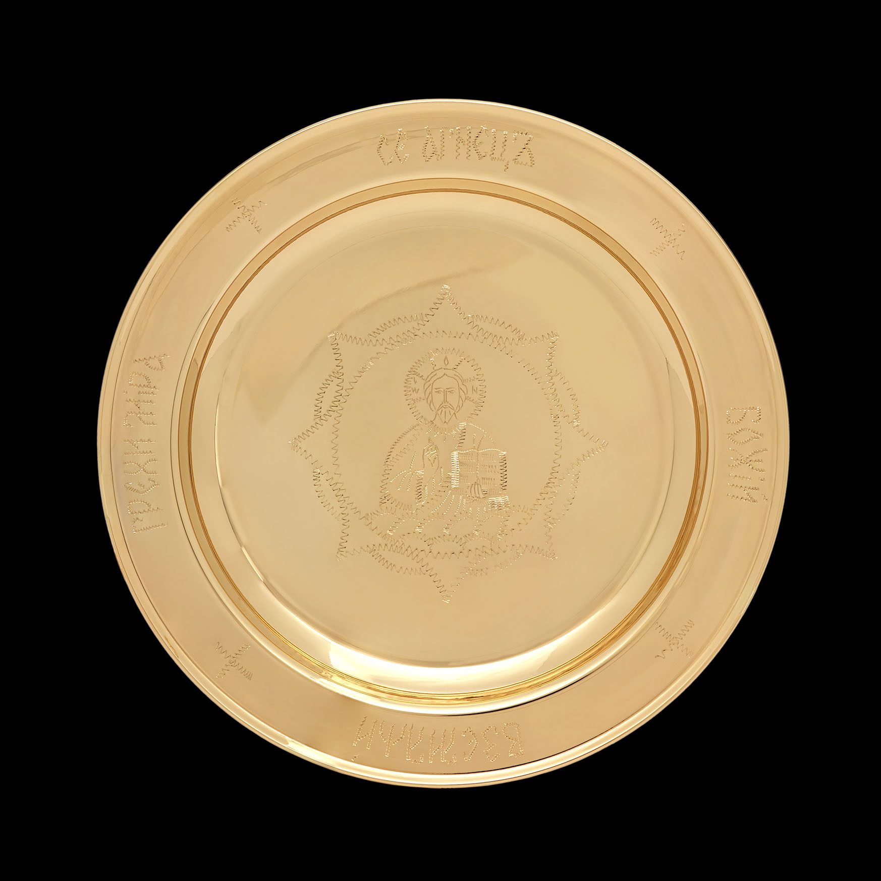 Дискос с поддискосником / ф240мм-потир 0,85л "№19" / лазерная, ручная гравировка / золочение