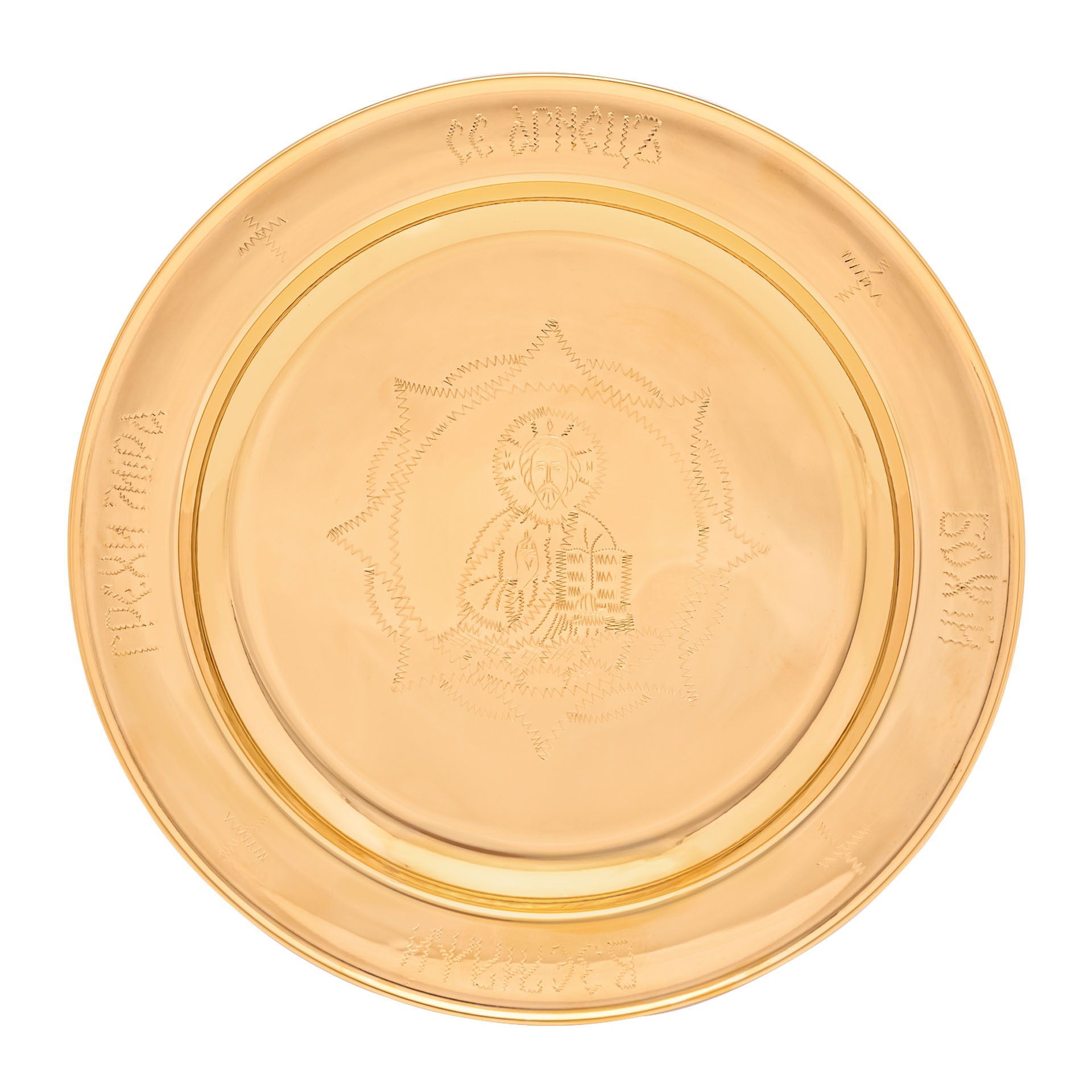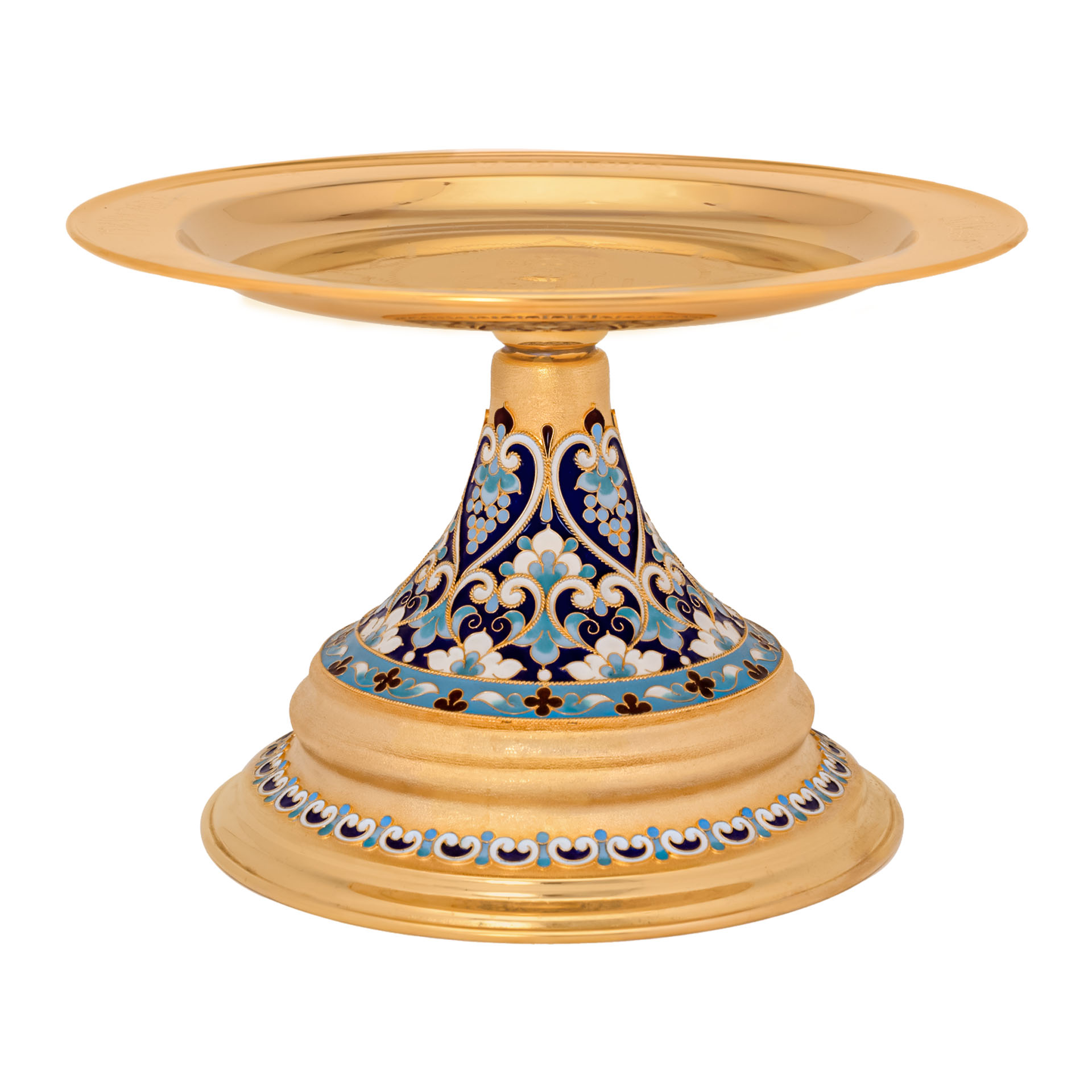 Дискос с поддискосником / ф240мм-потир 1,0л "№13" / филигрань, эмаль, ручная гравировка / золочение