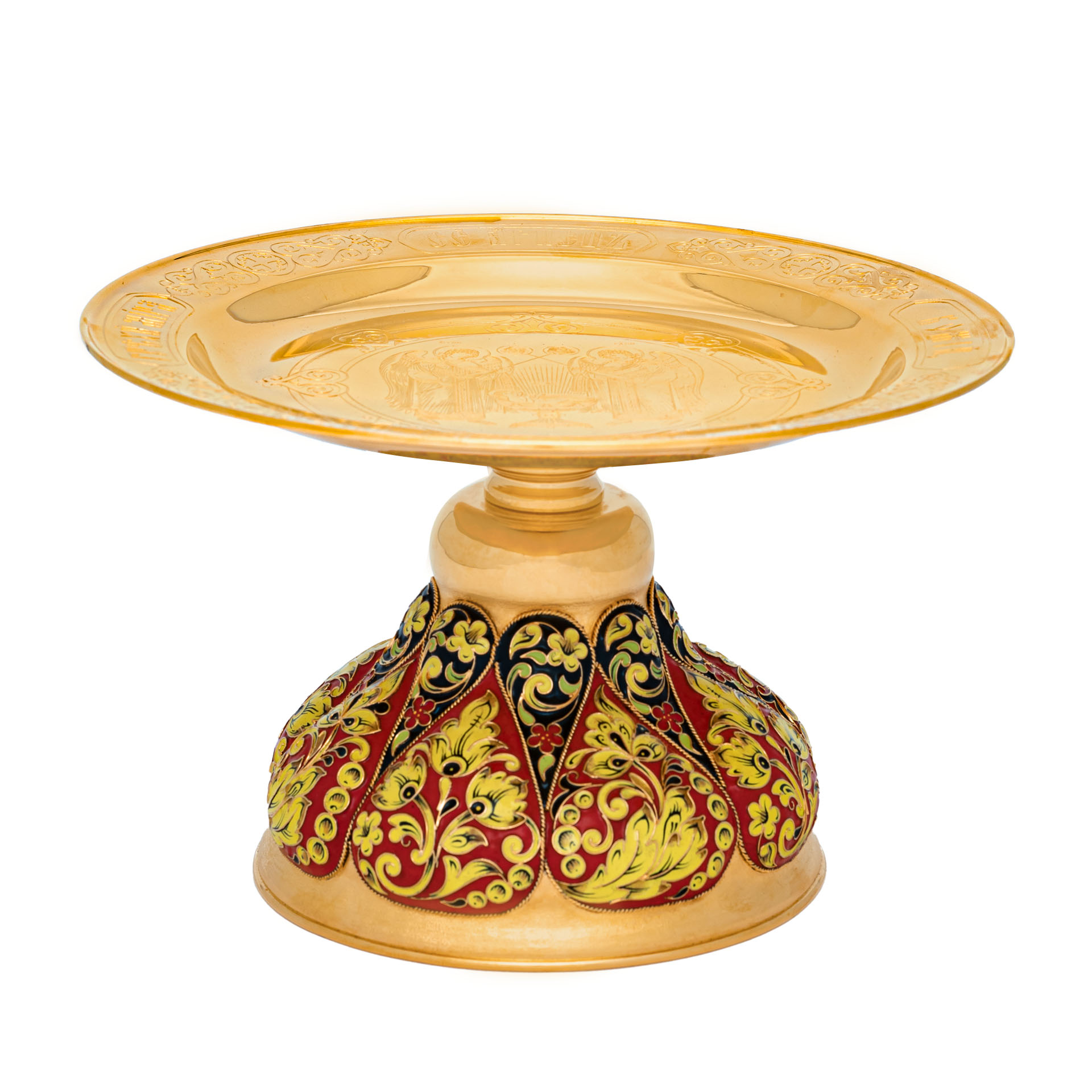 Дискос с поддискосником / ф240мм-потир 1,0л "№8"А" / филигрань, эмаль, роспись.чеканка.гравировка / золочение