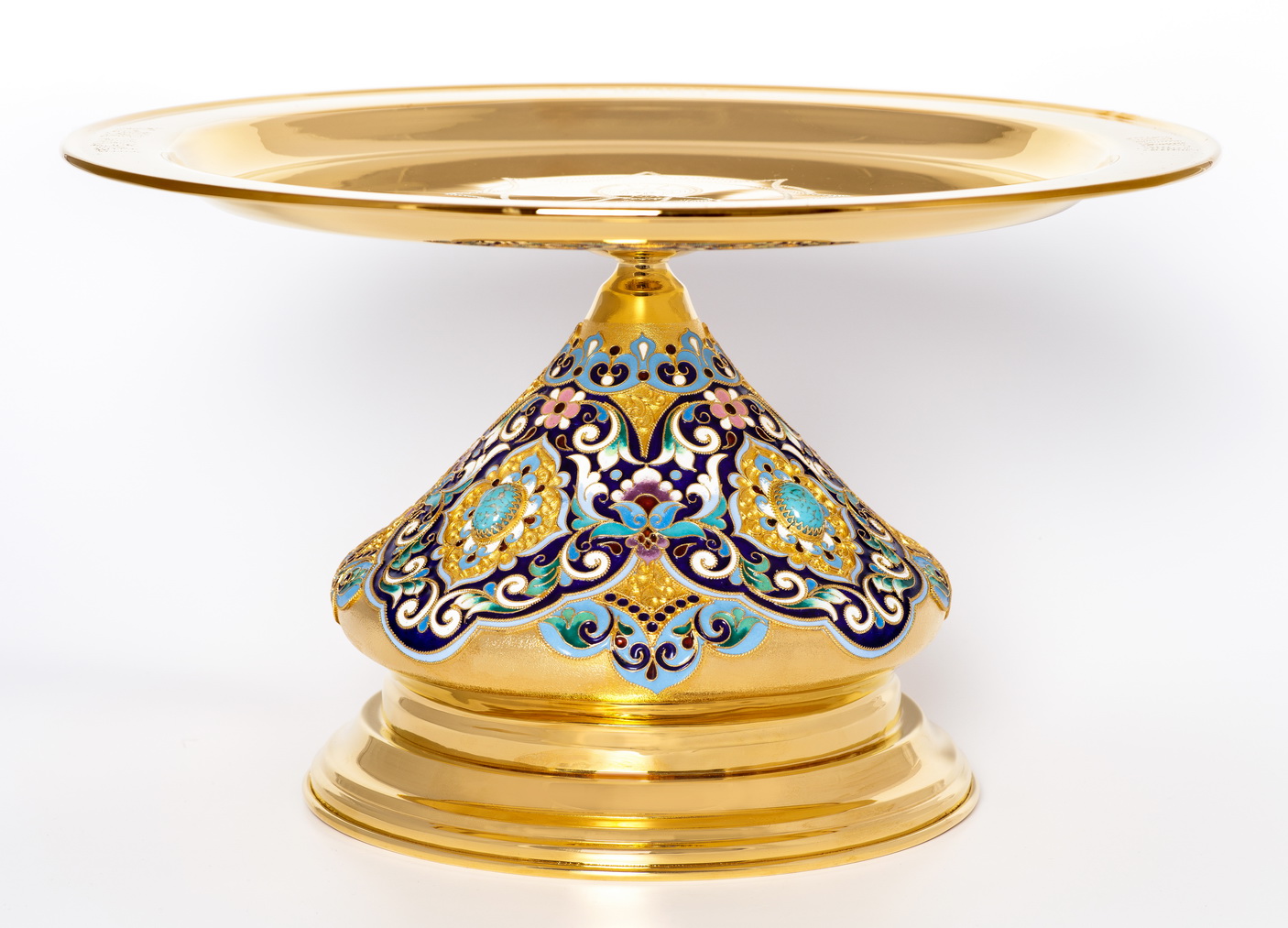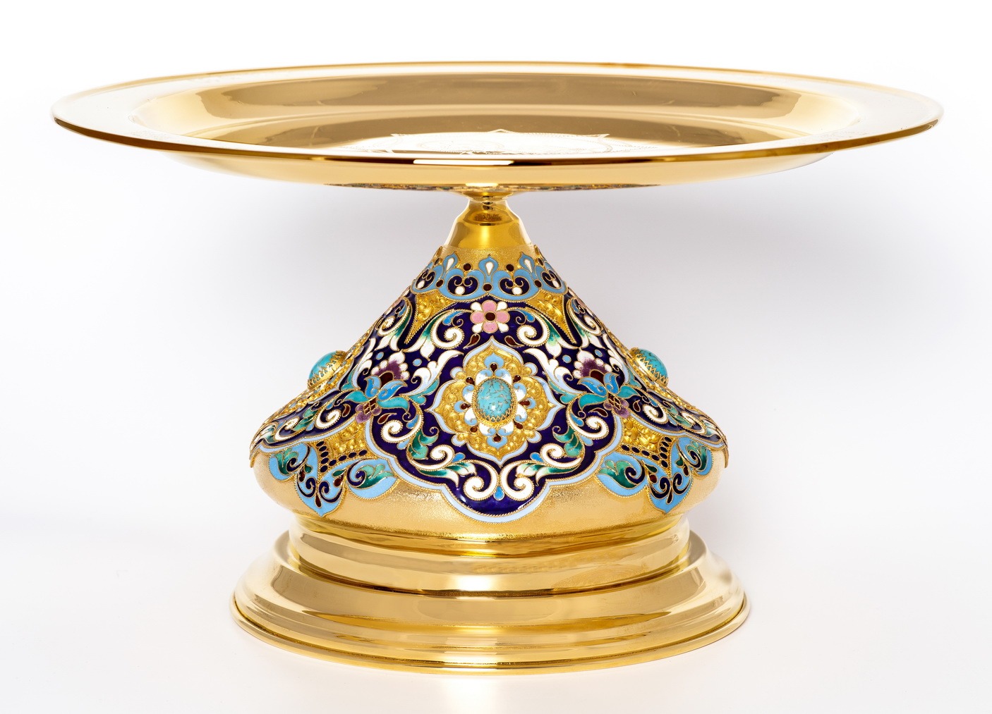 Дискос с поддискосником / ф280мм-1,75л"№16" / филигрань, эмаль, ручная гравировка / золочение