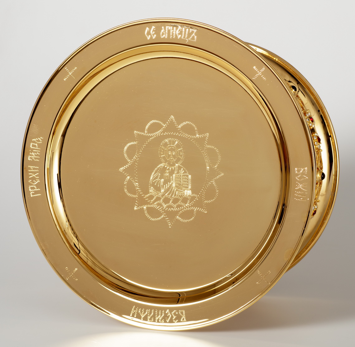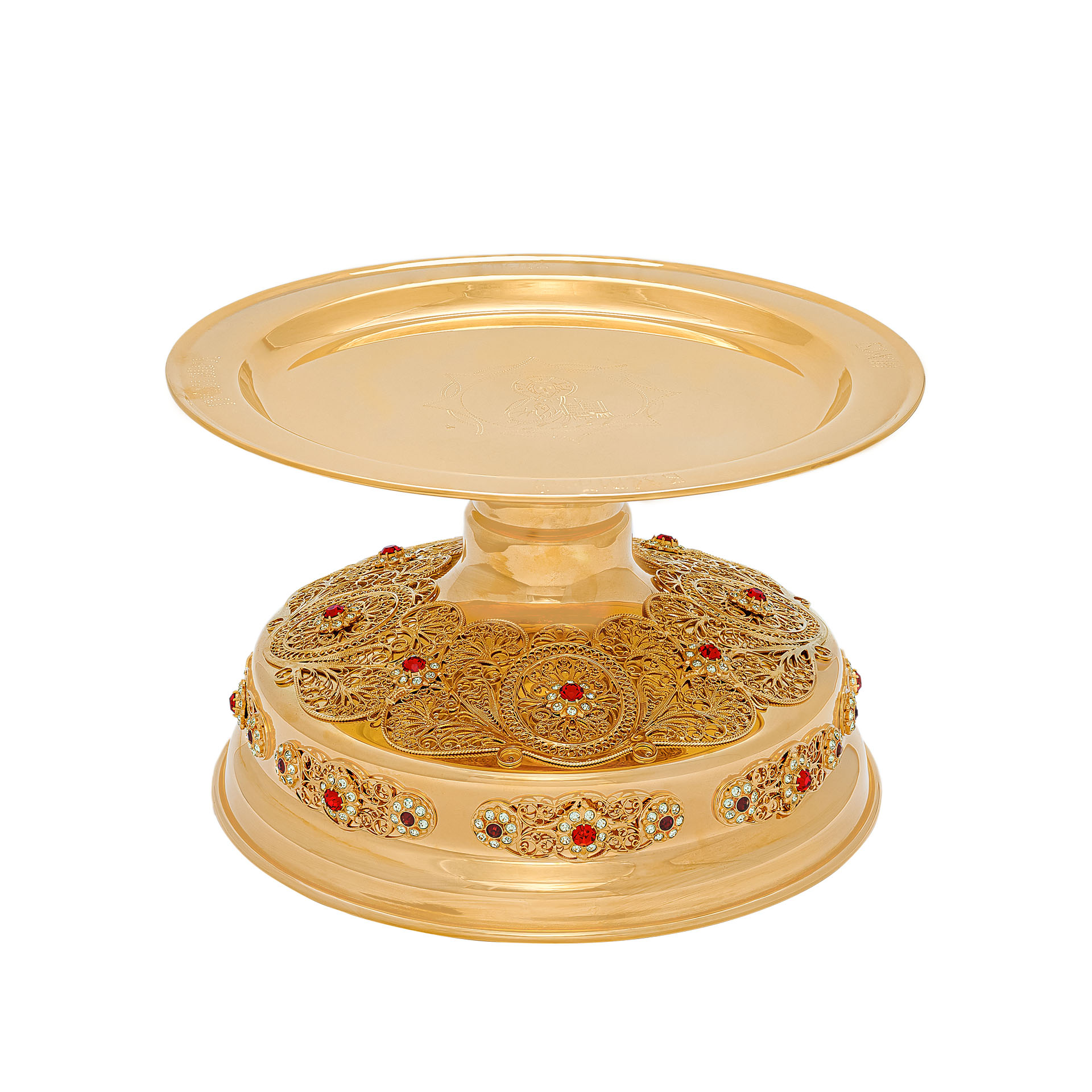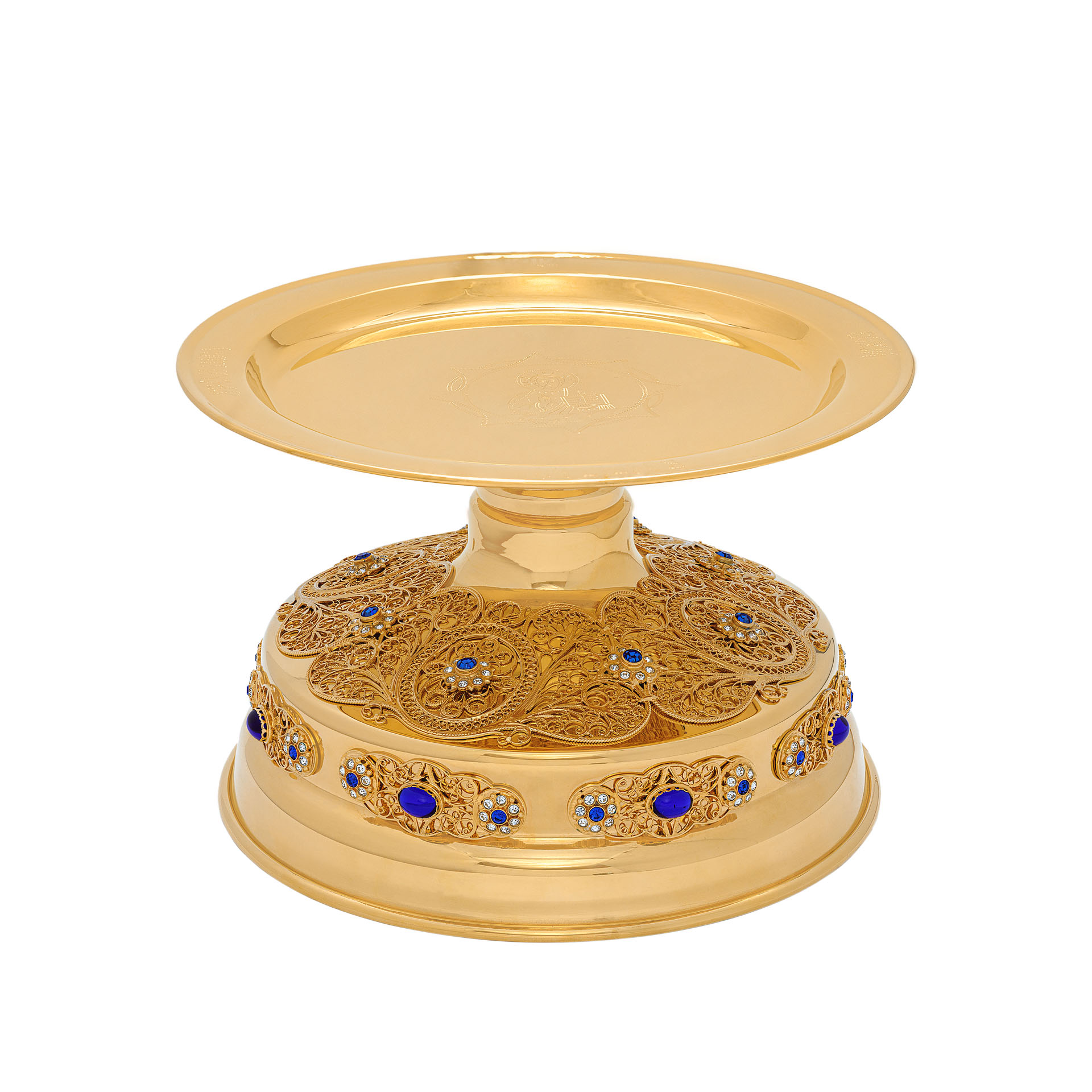 Дискос с поддискосником / ф320мм-к потиру 3,0л / филигрань, ручная гравировка / золочение