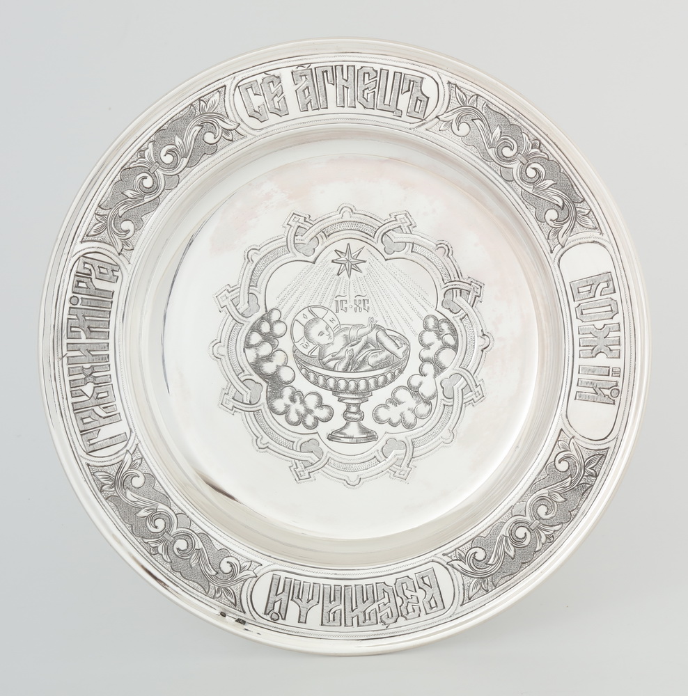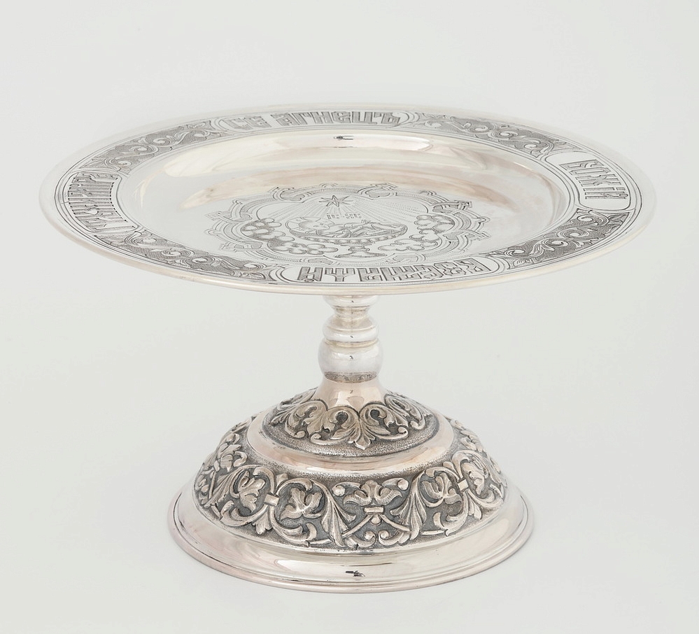 Дискос с поддискосником ручная гравировка, чеканка / ф220мм-потир 0,3л"№1" / серебро (УИН)
