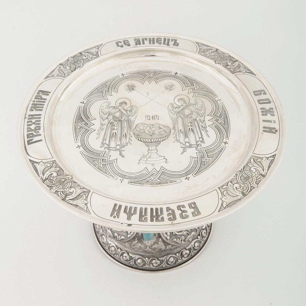 Дискос с поддискосником ручная гравировка, чеканка / ф280мм-потир 1,0л"№7" / серебро (УИН)