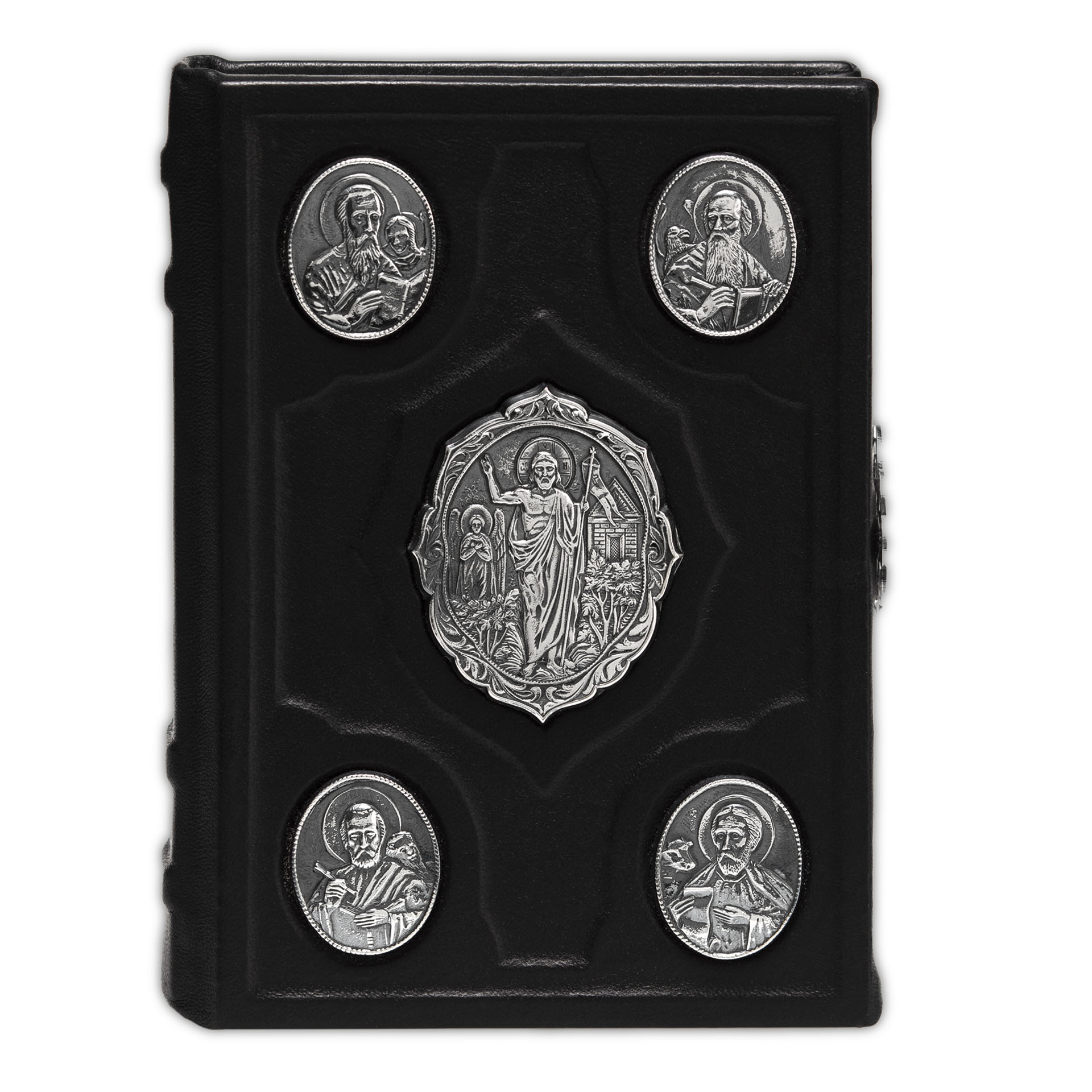 Евангелие 170х120 кожаный оклад г / пл серебрение чернение