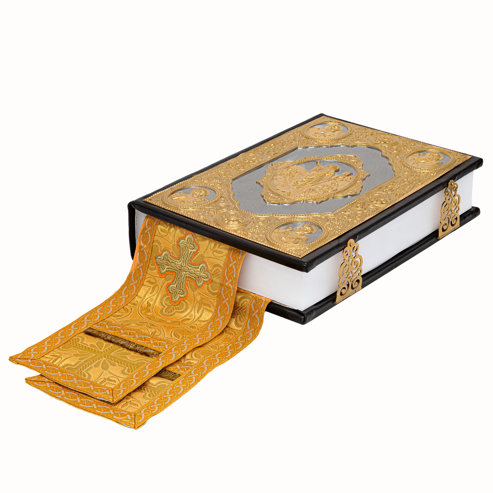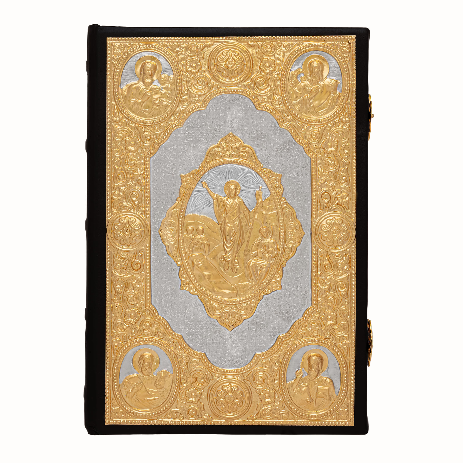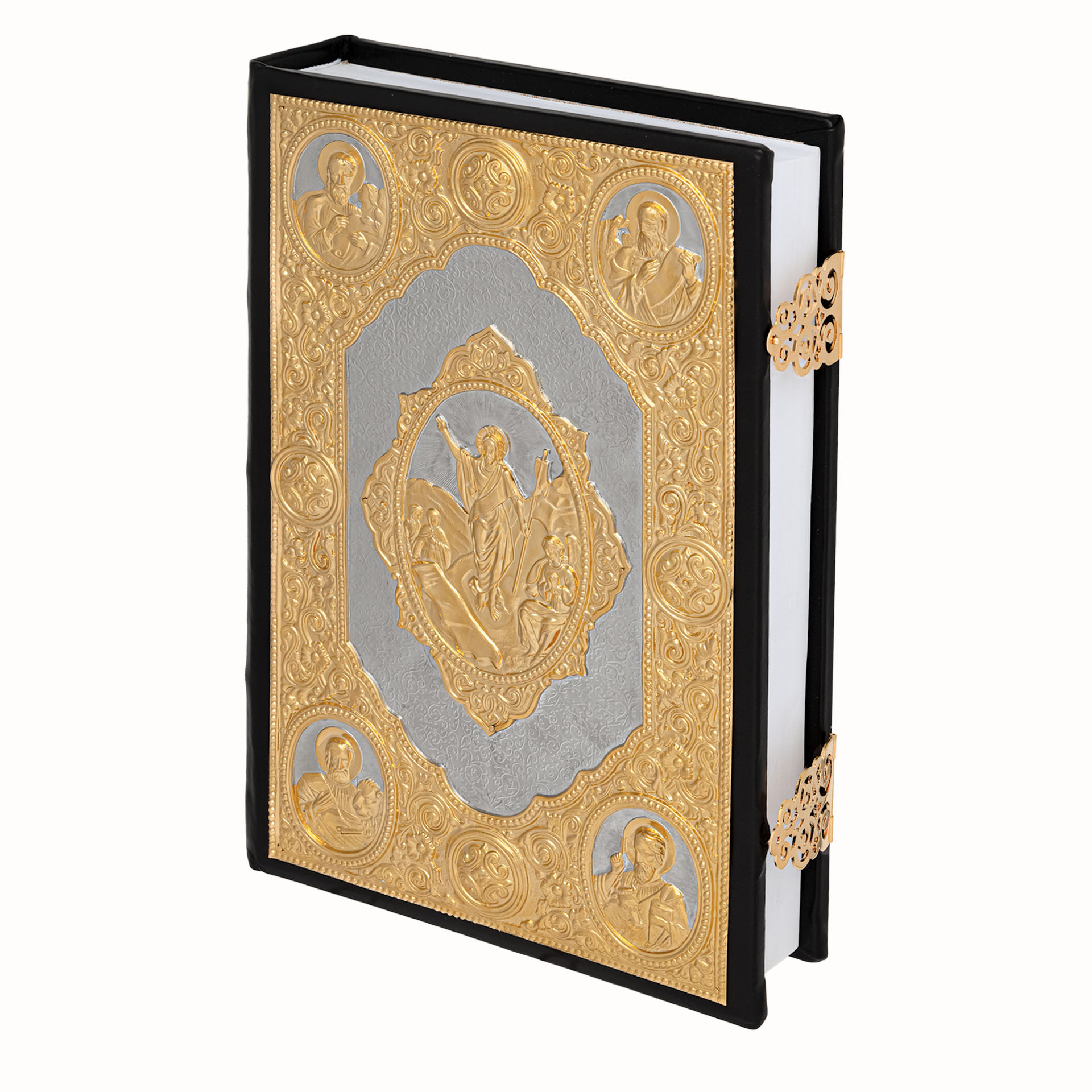 Евангелие 360*240 кожаный оклад г / пл крышки частичное золочение