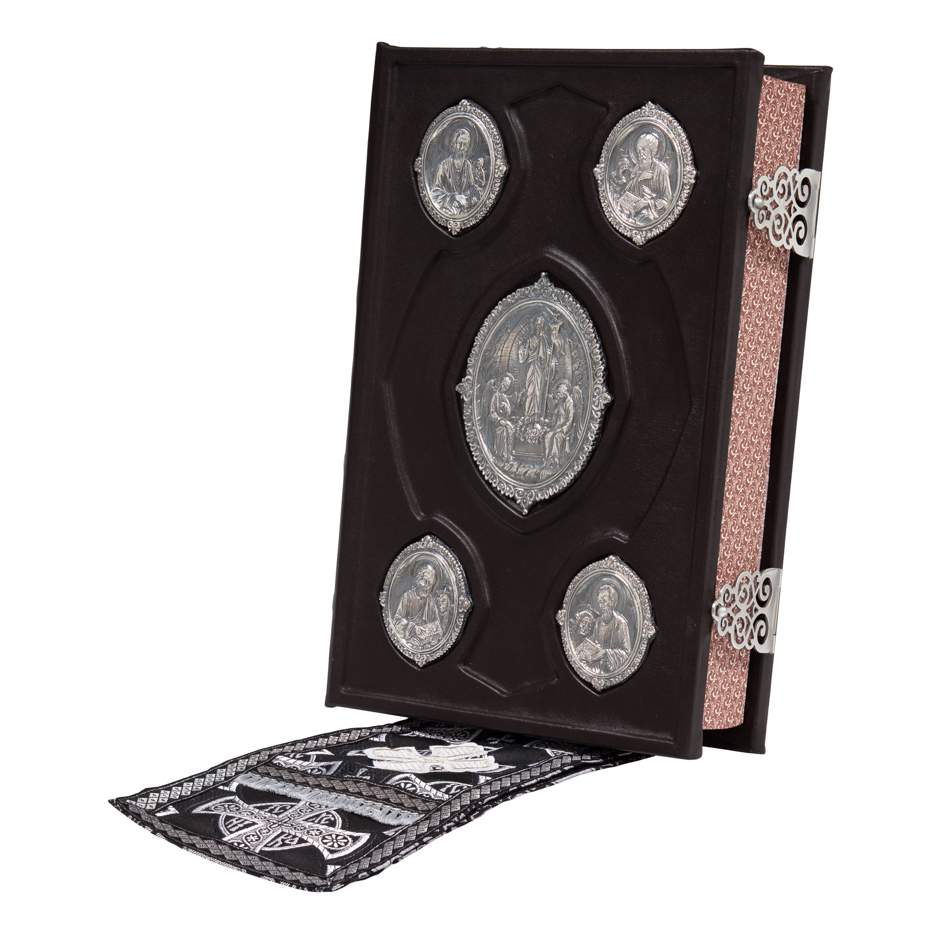 Евангелие 360*240 кожаный оклад г / пл накладки серебрение чернение