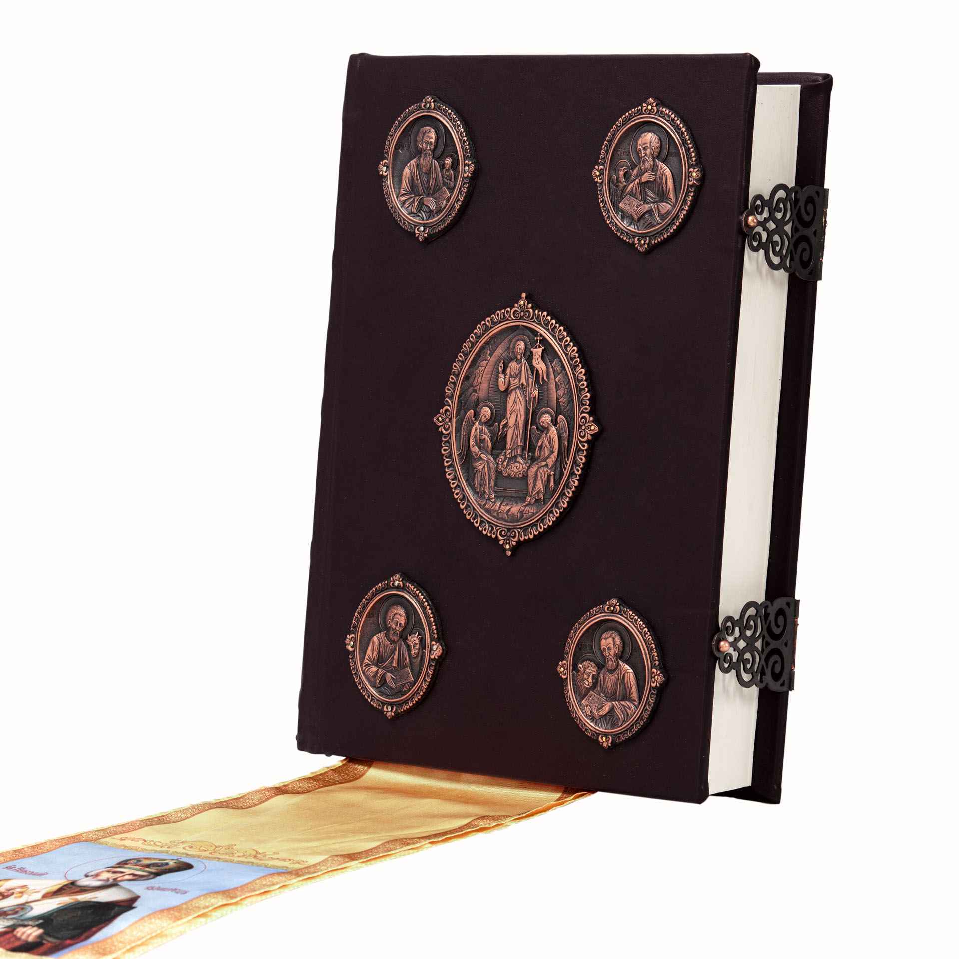 Евангелие 360*240 кожаный оклад г / пл патинирование