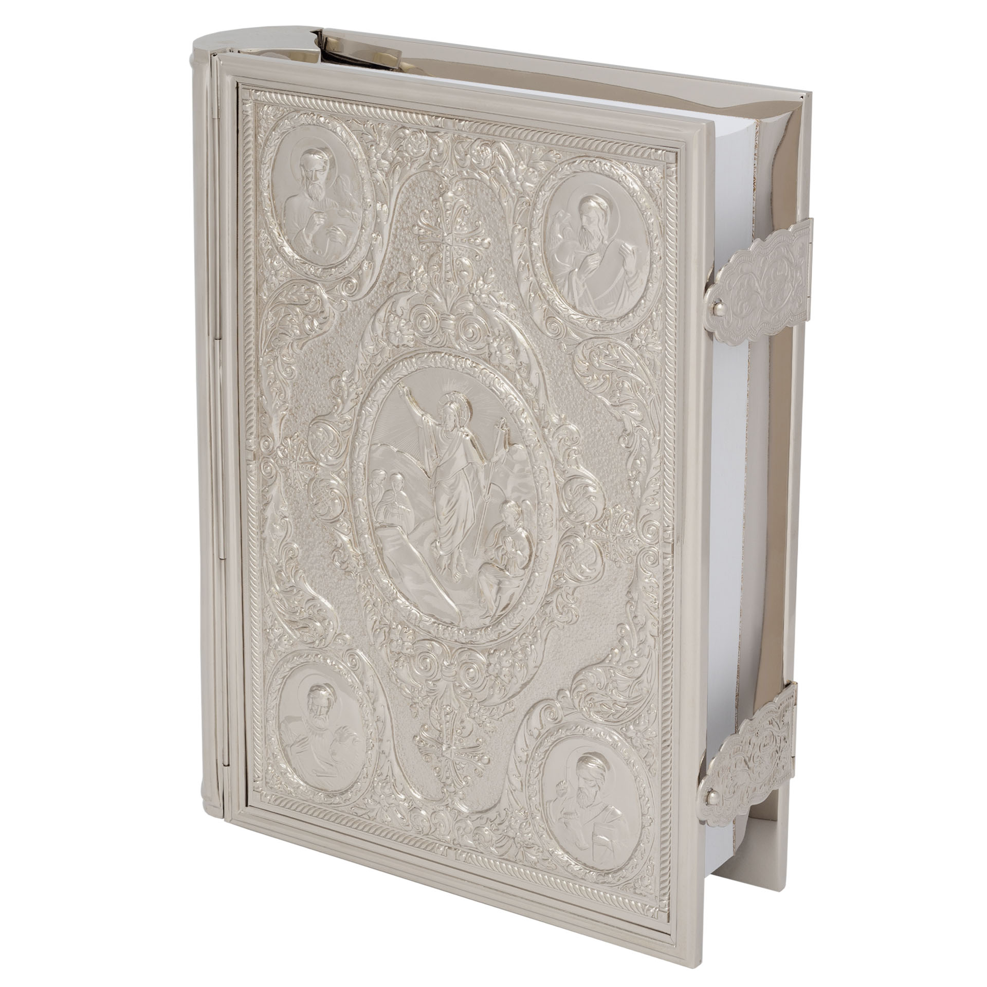 Текст Евангелия отпечатан в типографии ООО "ХПП" СОФРИНО"РПЦ" на церковно-славянском языке с указанием зачал. Данная книга дополняется закладкой из церковной ткани.