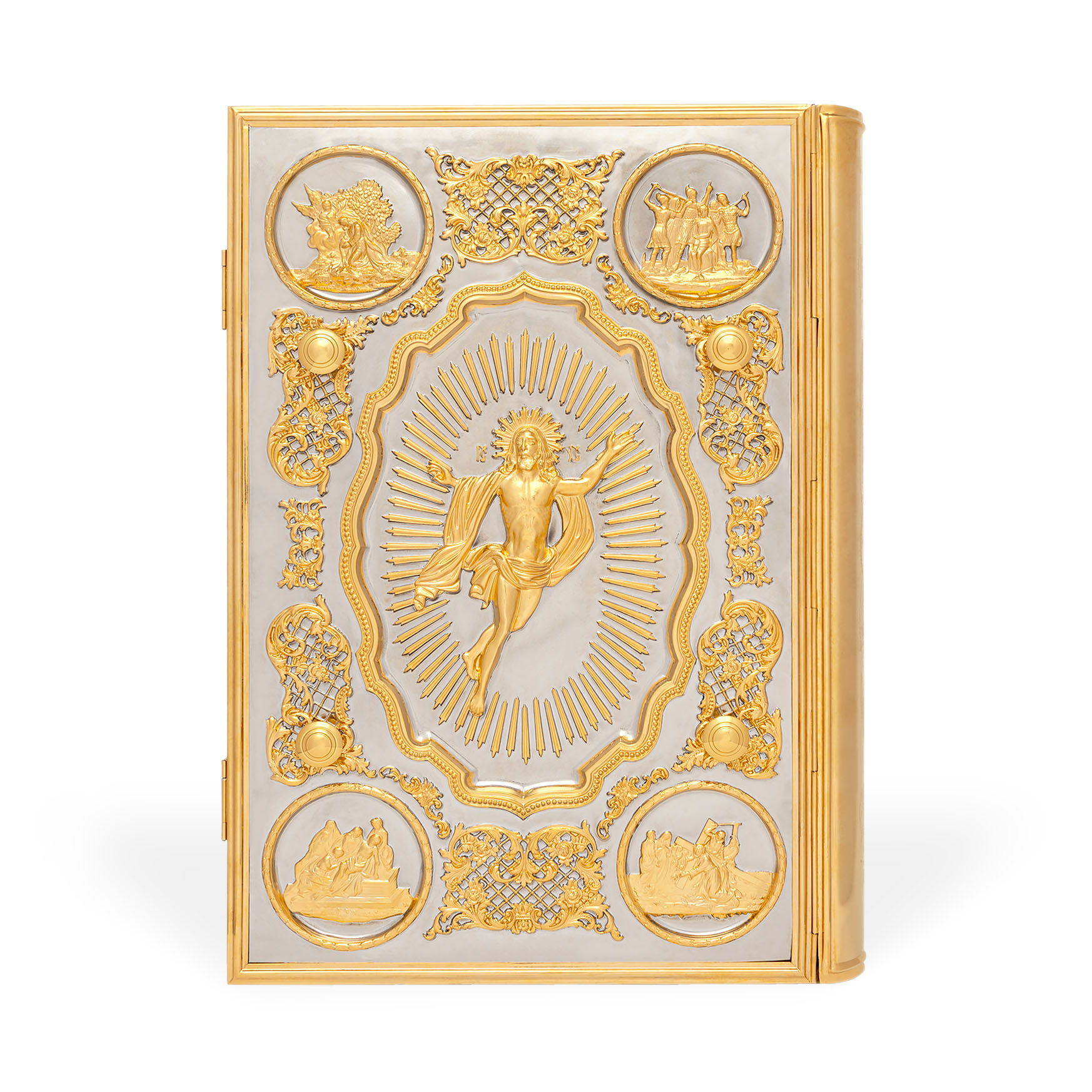 Текст Евангелия отпечатан в типографии ООО "ХПП" СОФРИНО"РПЦ" на церковно-славянском языке с указанием зачал. Данная книга дополняется закладкой из церковной ткани.
