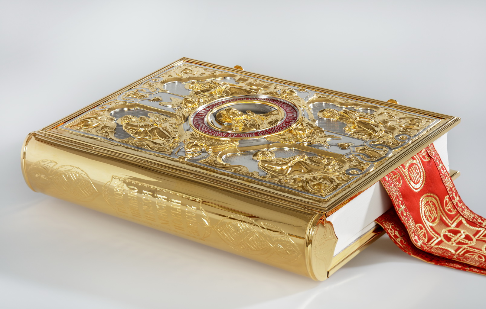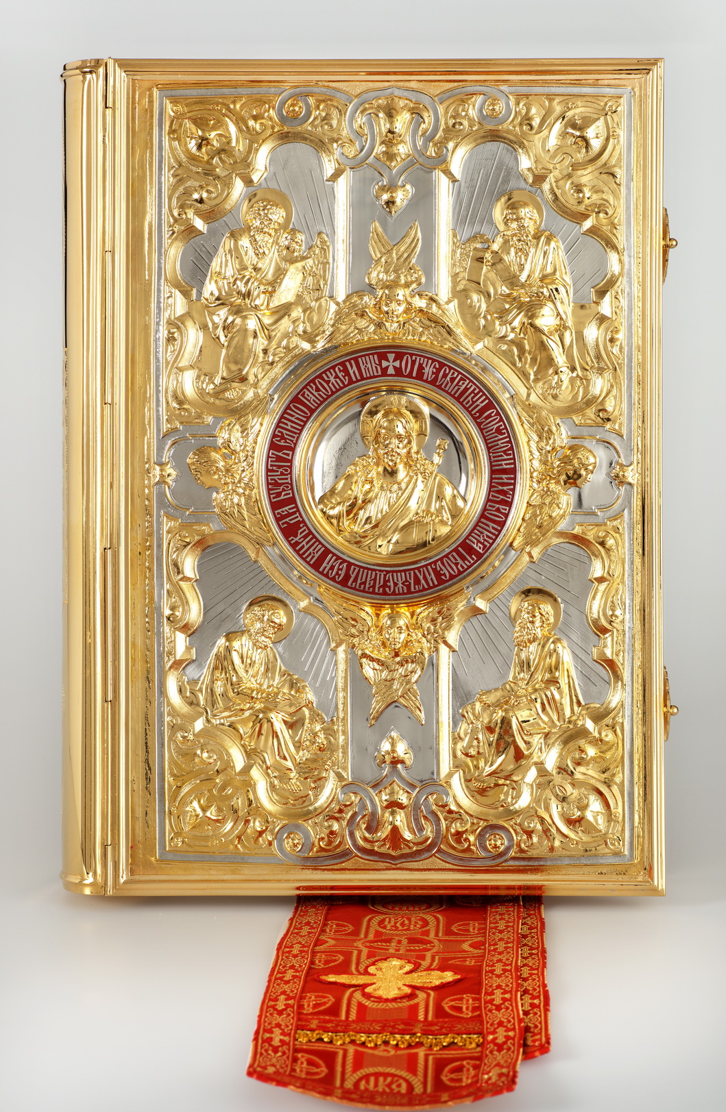 Евангелие 470*330 напрестольное №6 крышки част. золочение эмаль красный {{variant.name}}