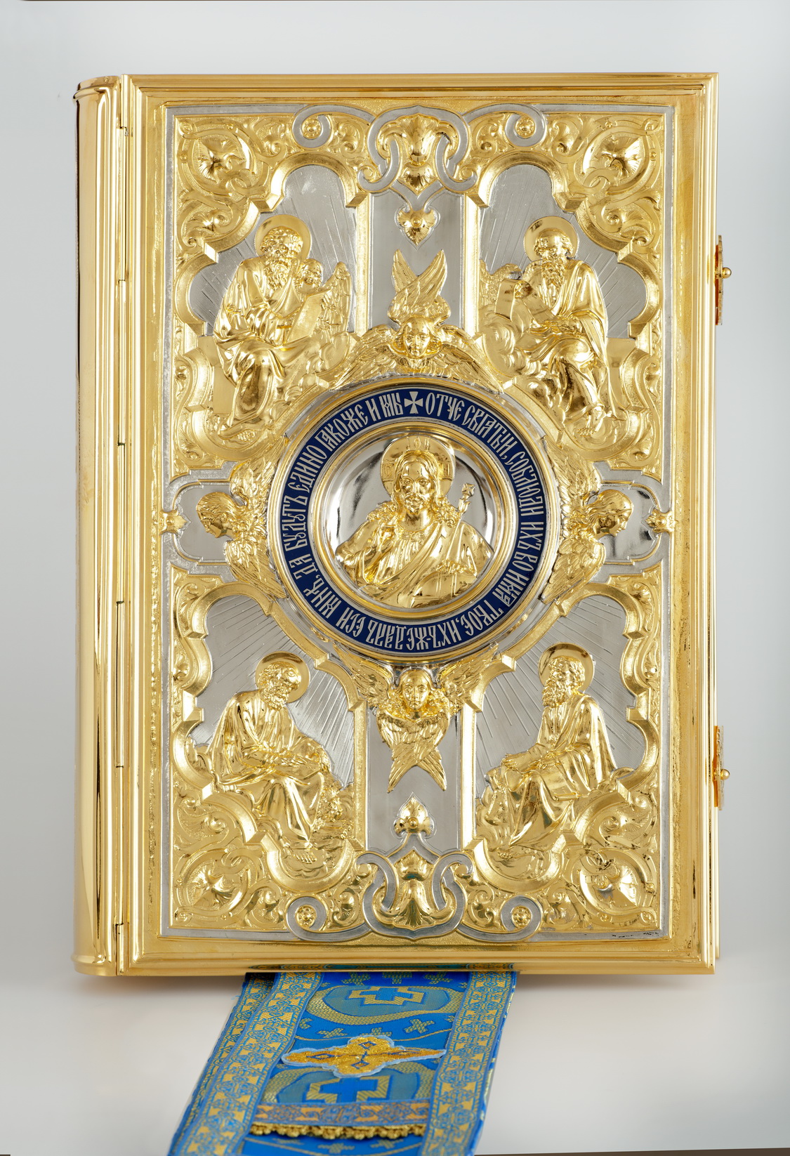 Евангелие 470*330 напрестольное №6 крышки част. золочение эмаль синий {{variant.name}}