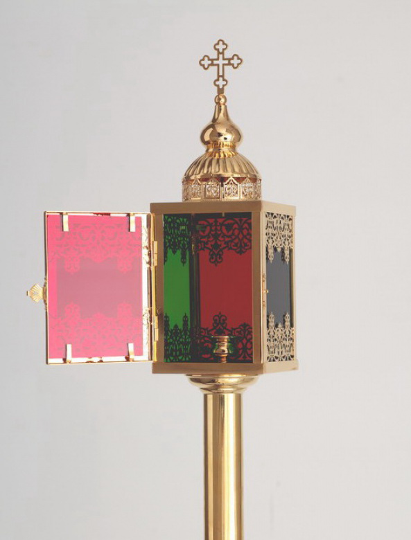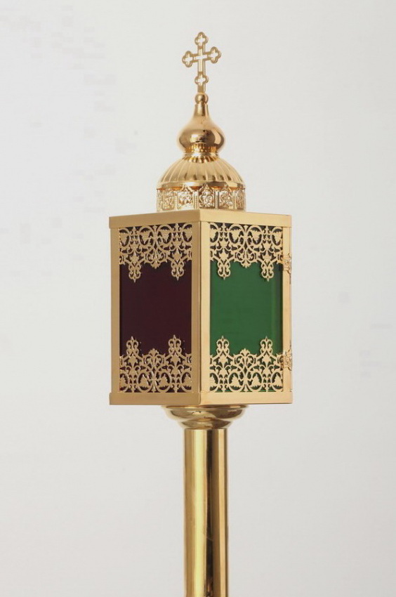 В комплекте деревянное древко, покрытое краской золотого цвета. Диаметр - 36 мм. Длина - 1800 мм. Диаметр под свечу - 20 мм.