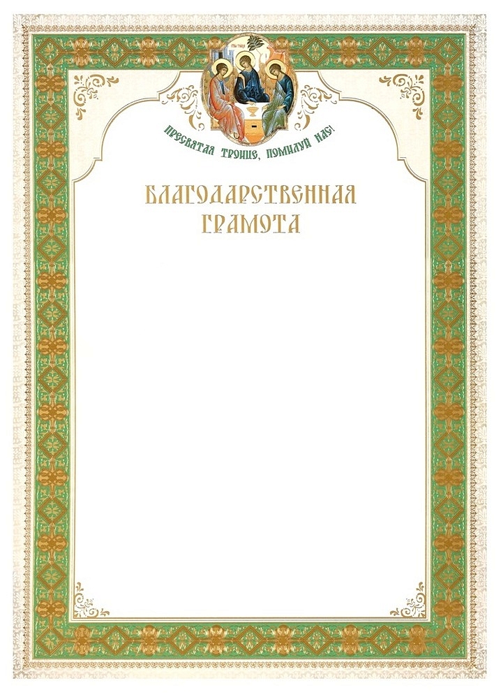 Грамота церковная А4 тиснение Троица (Рублевская)