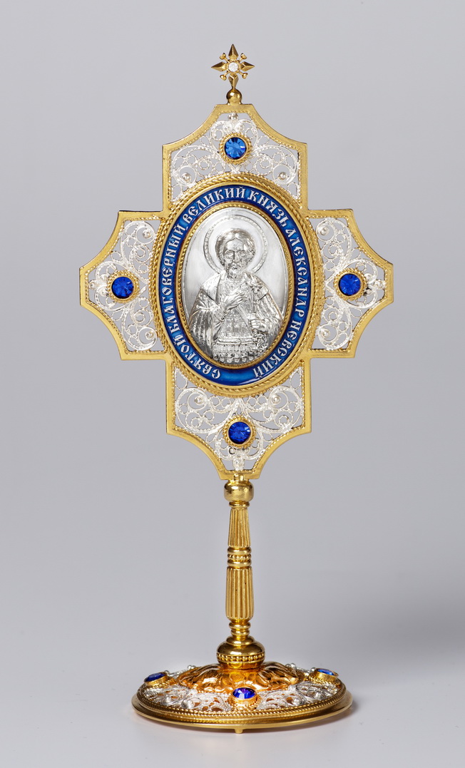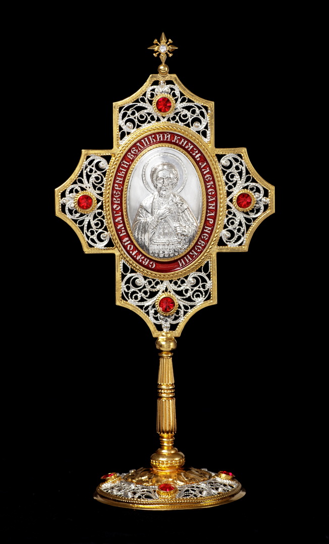 Икона именная №52 гальванопластический лик, эмаль / золочение, серебрение / Александр Невский