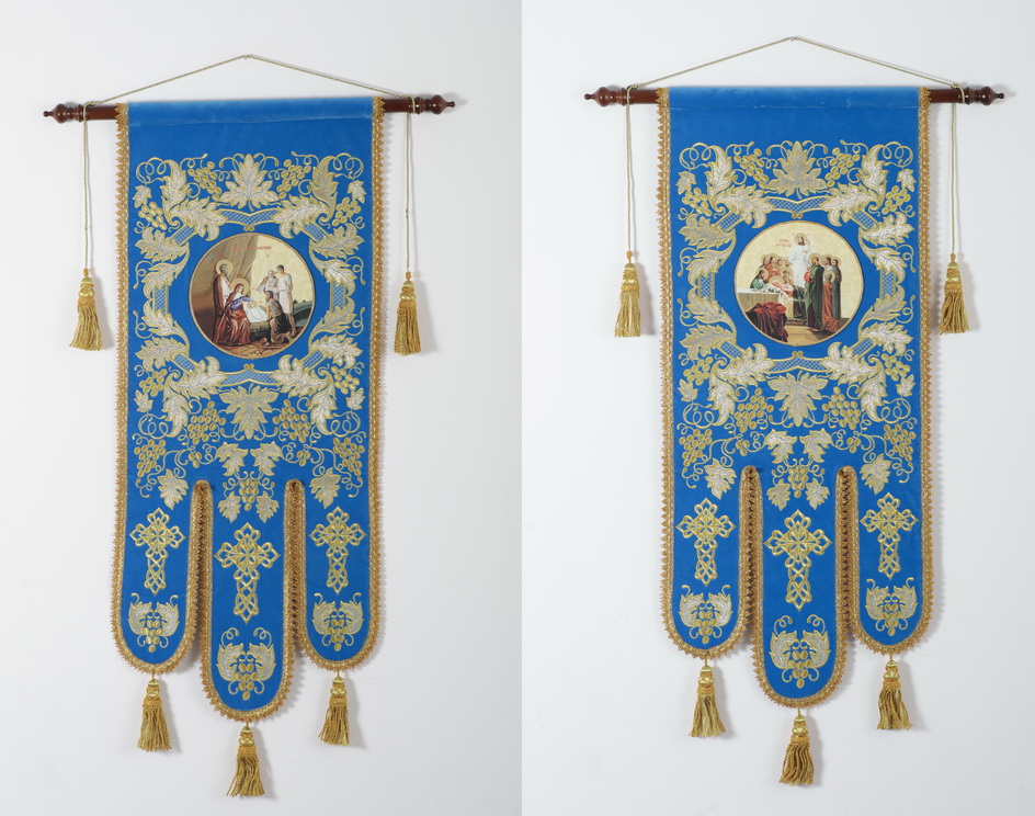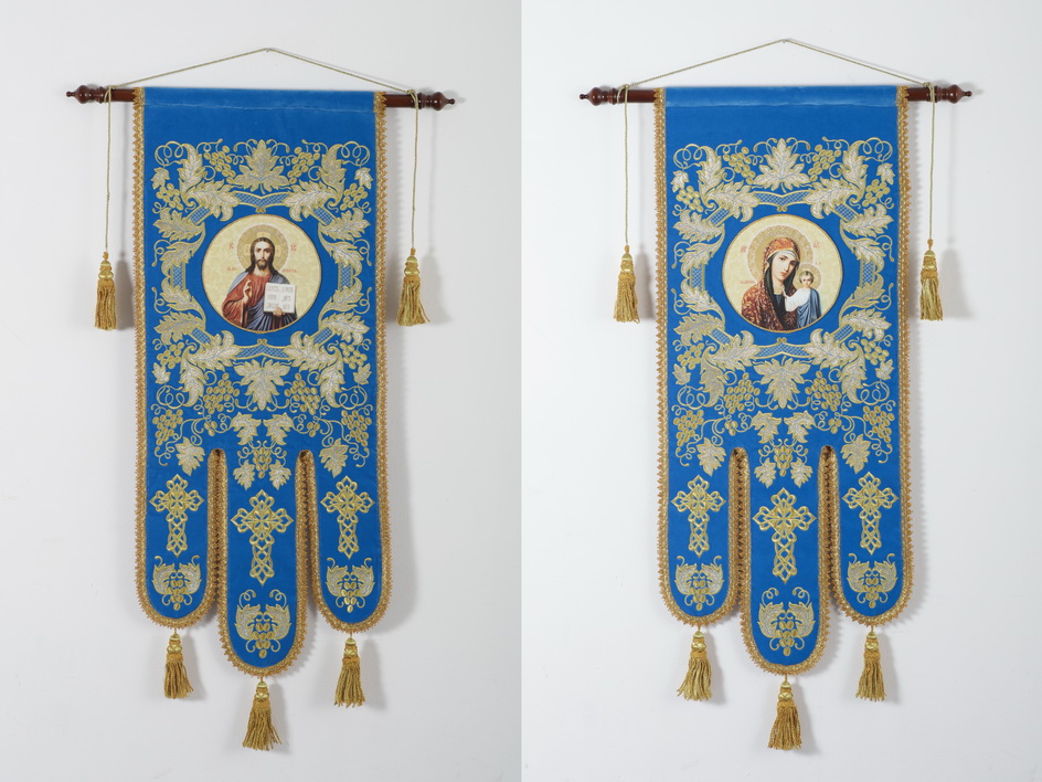 Хоругви на бархате средние аппликация вышивка а.м. с иконами объемными на пластике (пара) {{variant.name}}
