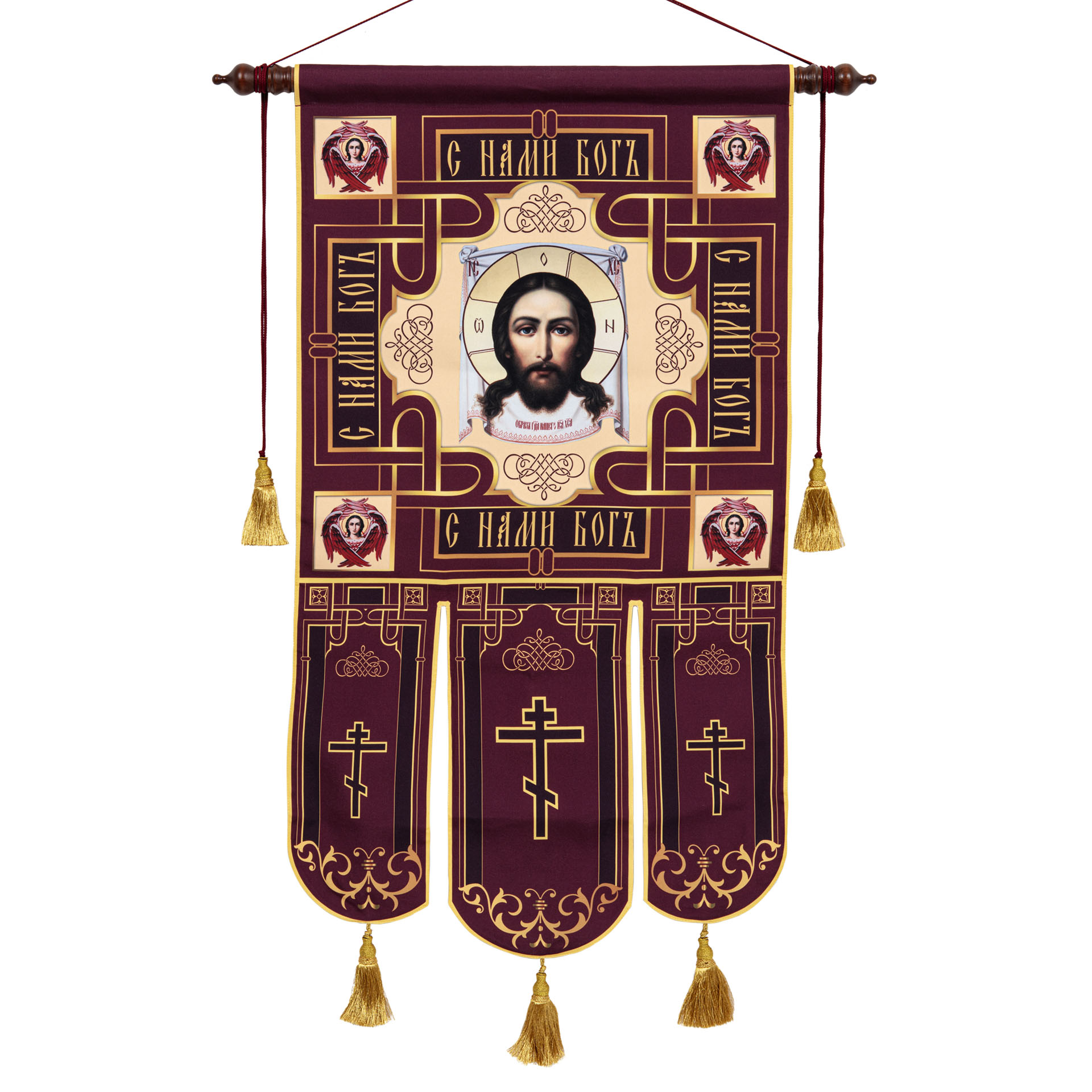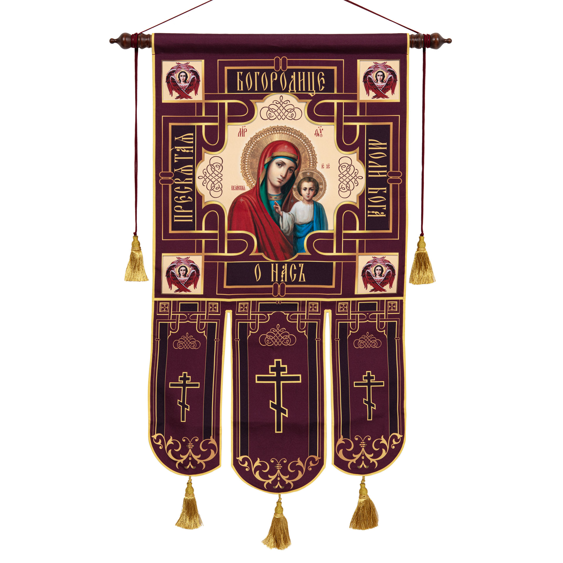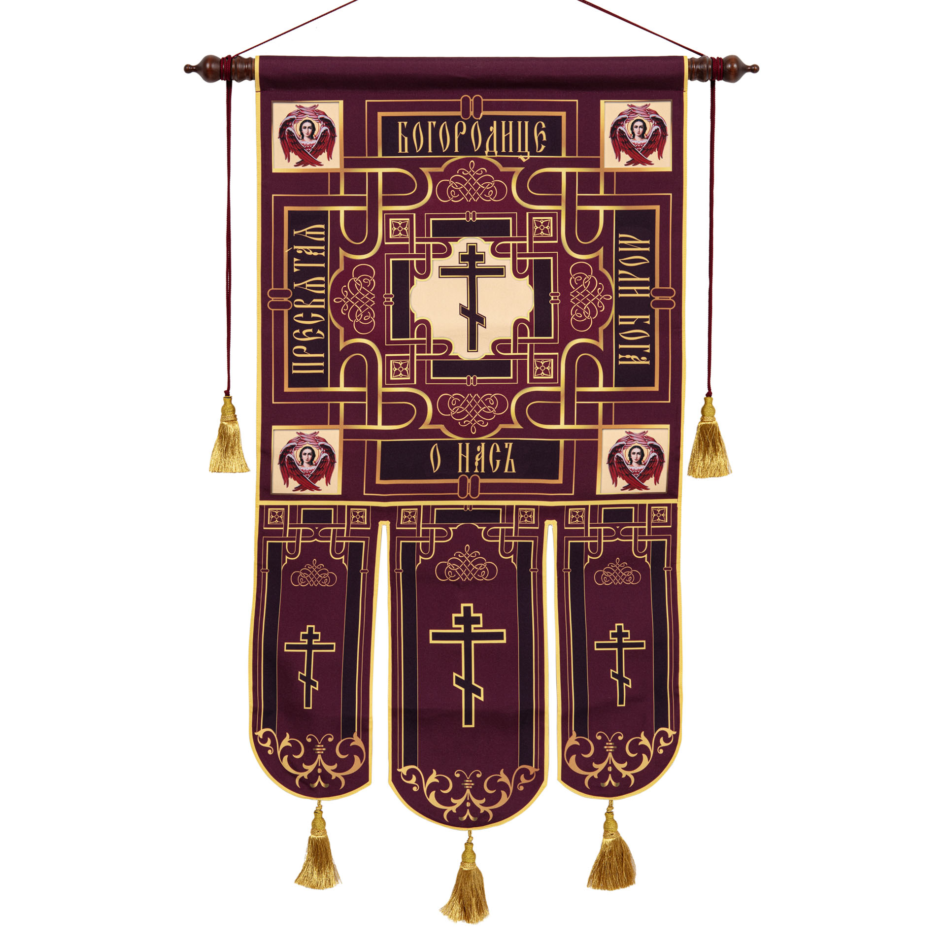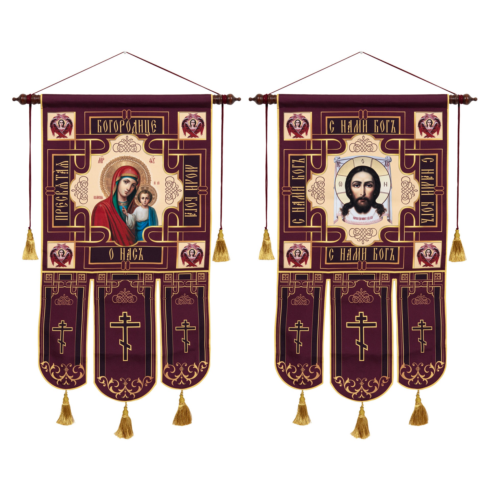 Хоругви выполненны на ткани габардин, путем сублимационной печати.