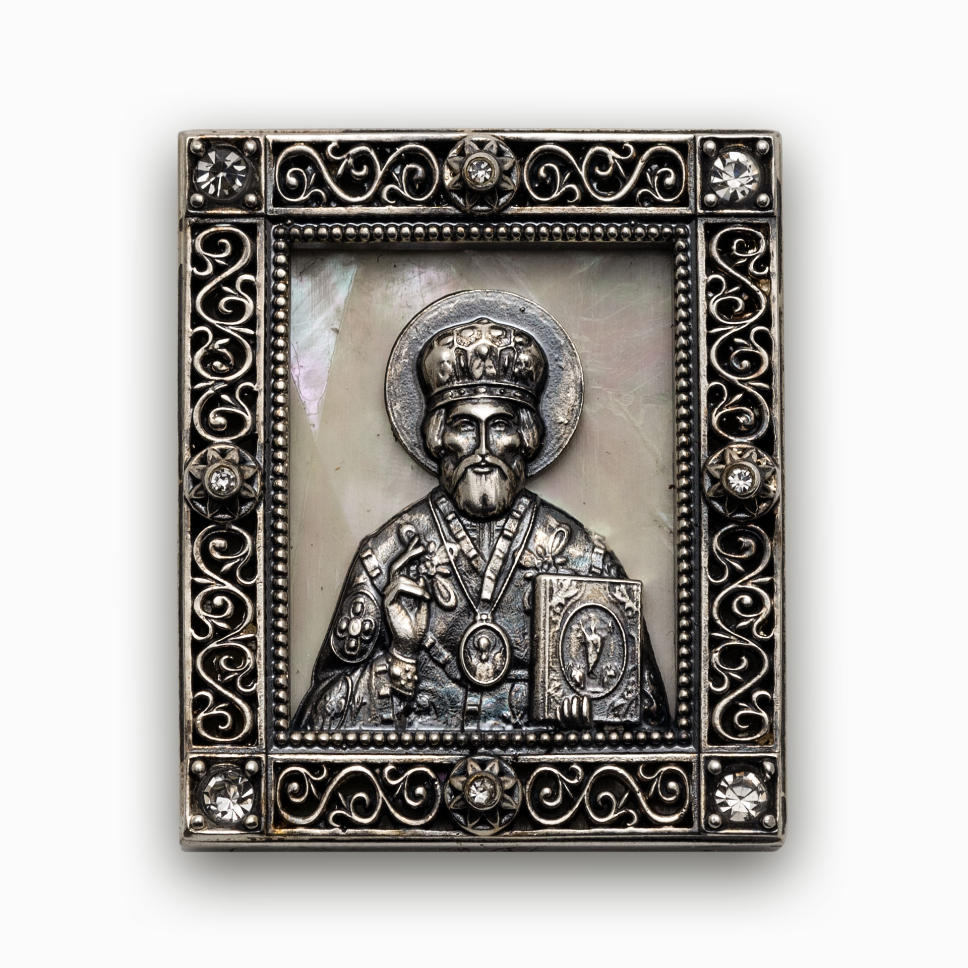 Икона автомобильная №4 / серебрение / Николай Чудотворец