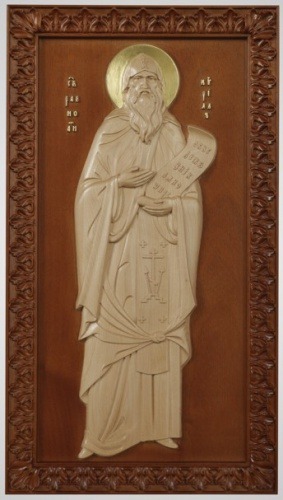 Икона деревянная, резная Кирилл