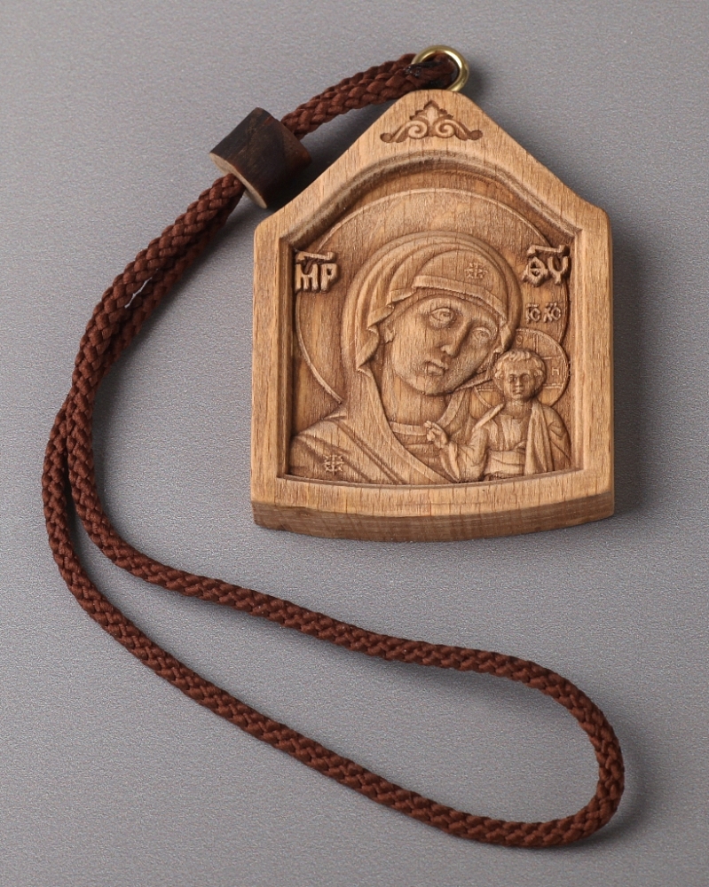 Икона деревянная в автомобиль на подвеске Казанская