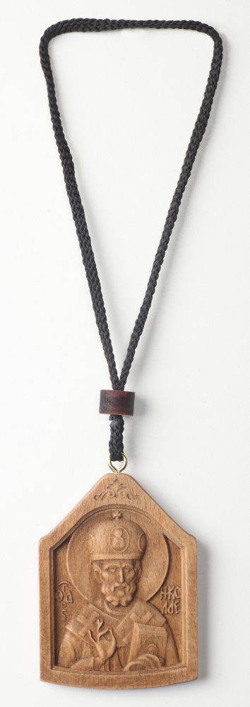 Икона деревянная в автомобиль на подвеске Николай Чудотворец
