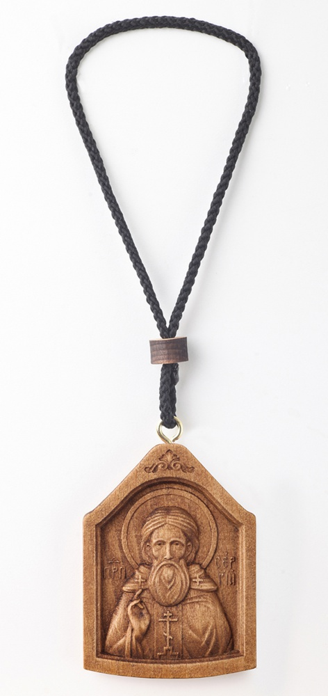 Икона деревянная в автомобиль на подвеске Сергий Радонежский