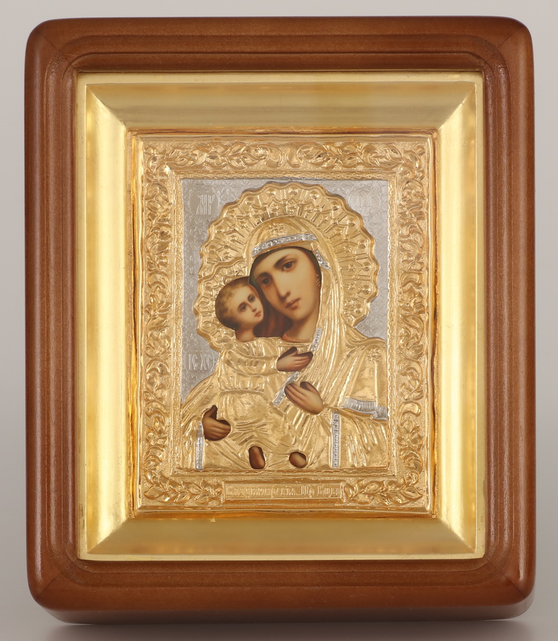 Икона фото в киоте 11х13 риза №8 золоченая, золоченый подрамник Владимирская БМ