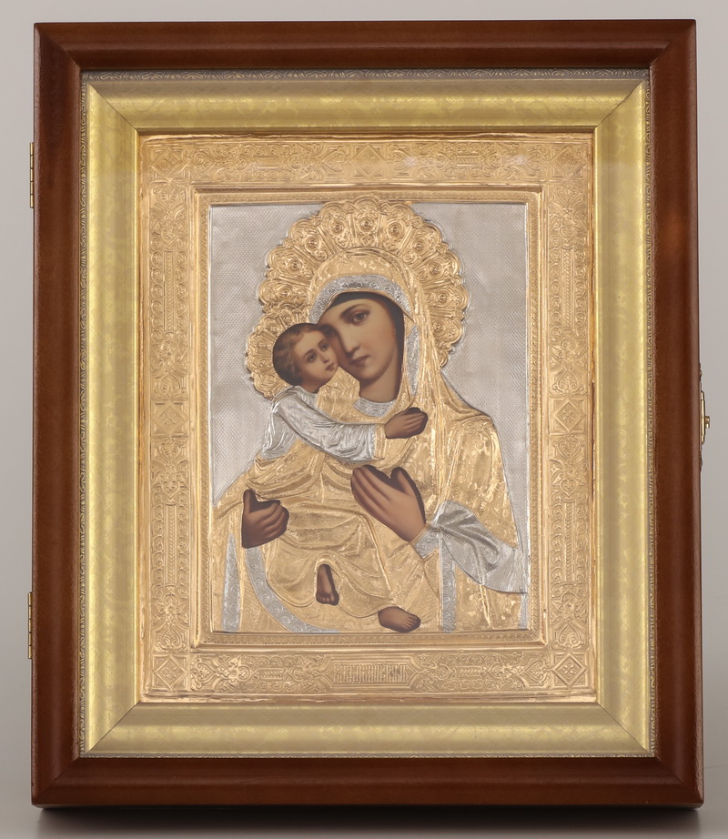Икона фото в киоте 18х24 риза №5 золочёная, багетный подрамник Владимирская БМ