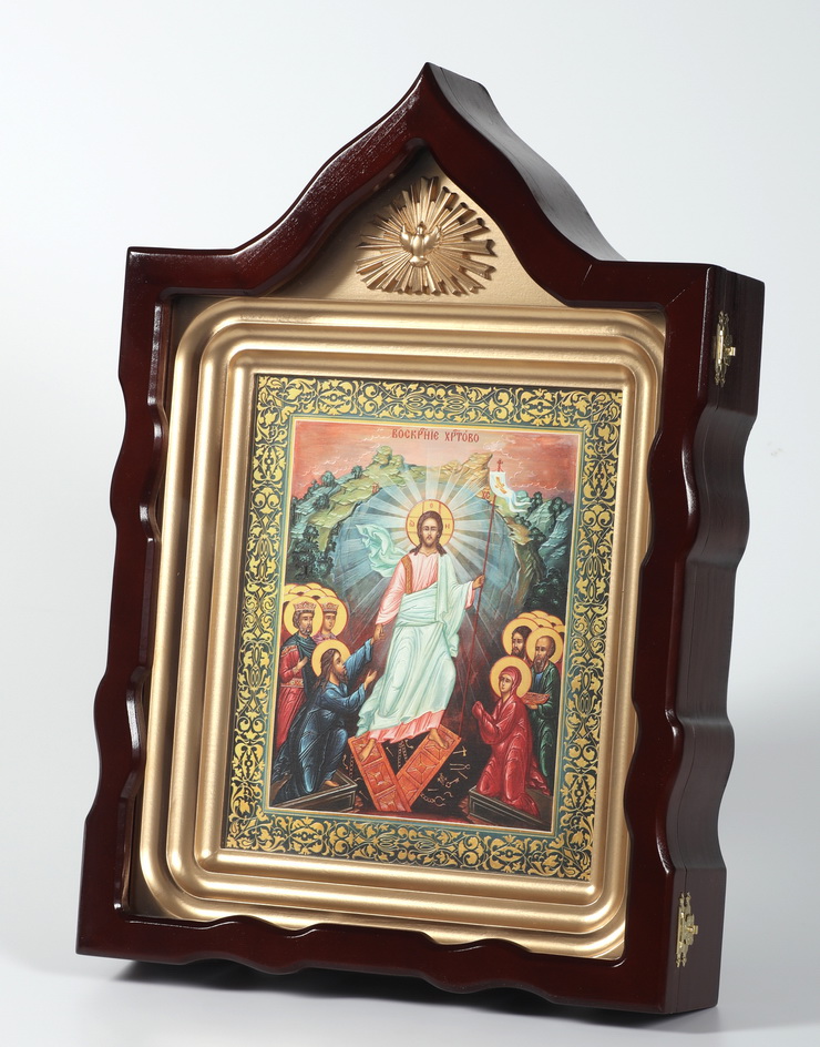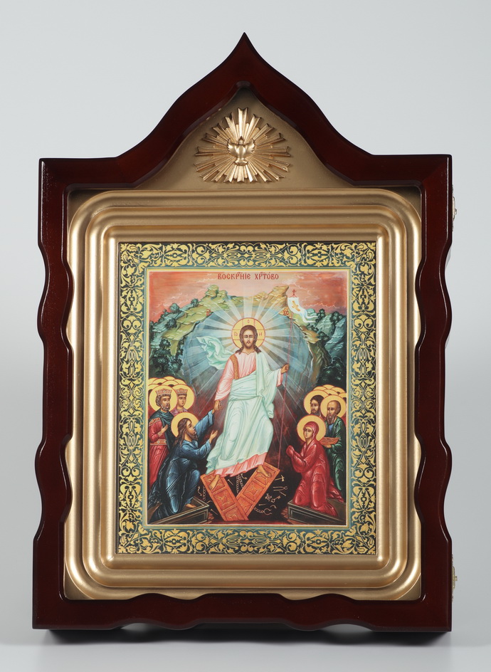 Икона фото в киоте 24х30 объемная печать, киот №7 Воскресение Христово