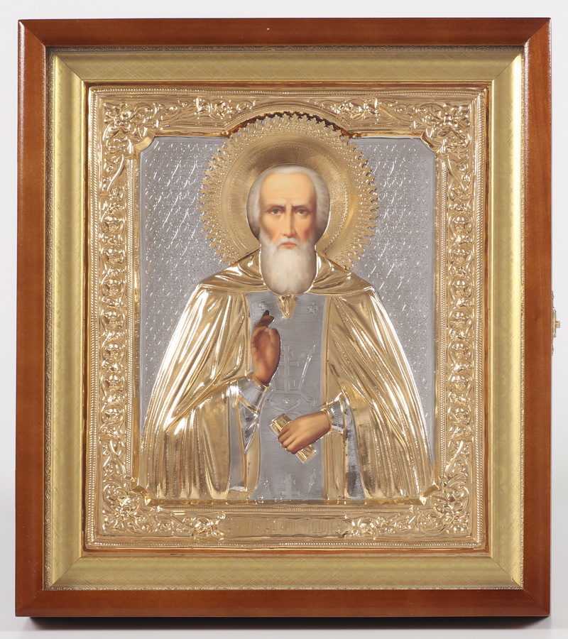 Икона фото в киоте 24х30 риза №191 золочёная, багетный подрамник Сергий Радонежский